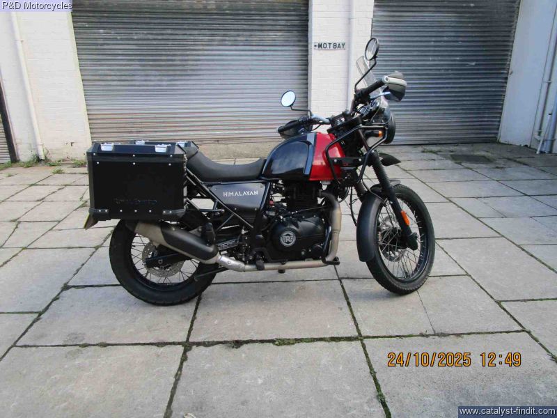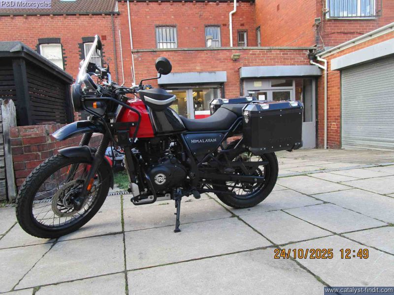- NEW IN THIS NICE EXAMPLE OF THE HIMALAYAN E5 MODEL IN ROCK RED. THIS IS A LOW MILEAGE (9522)ONE OWNER BIKE WITH NICE EXTRAS FITTED- HEATED GRIPS,CHAIN OILER, HARD PANNIERS.KNUCKLE GUARDS AND FRONT CRASH BARS.READY FOR YOUR PLEASURE. COMES WITH 2 KEYS AND HANDBOOK AND SOME SERVICE HISTORY. USUAL DEALER FACILITIES APPLY.