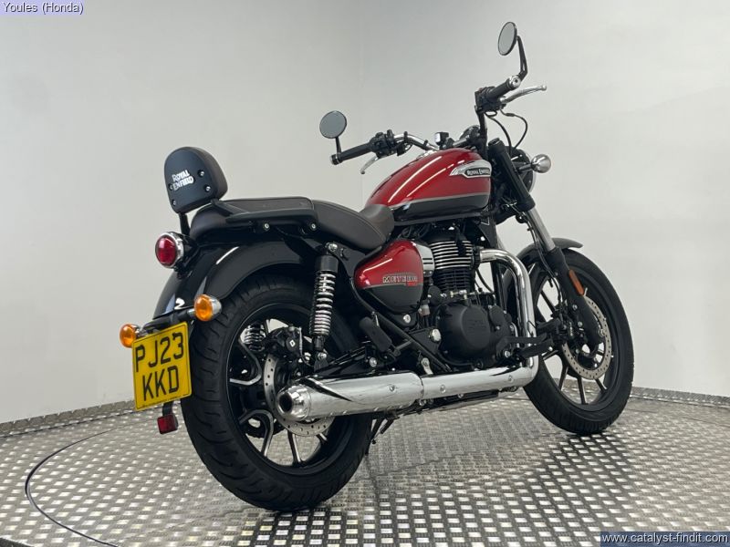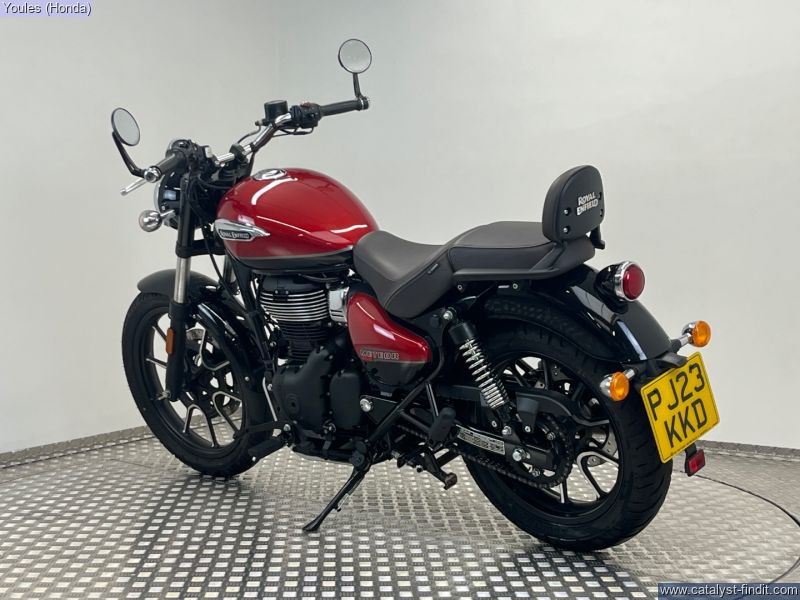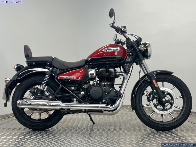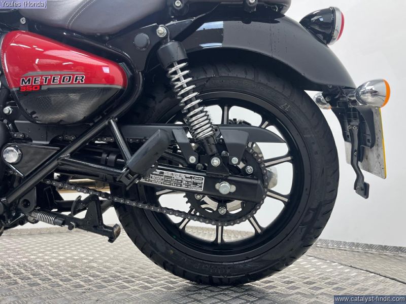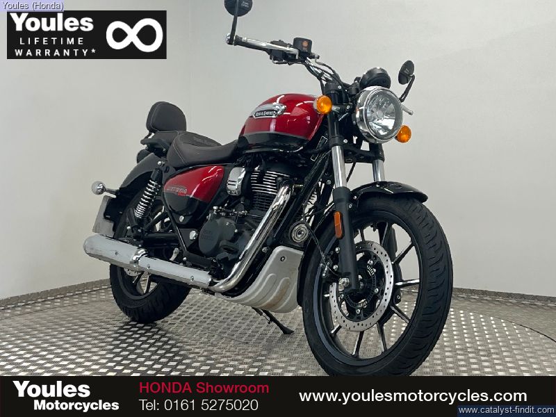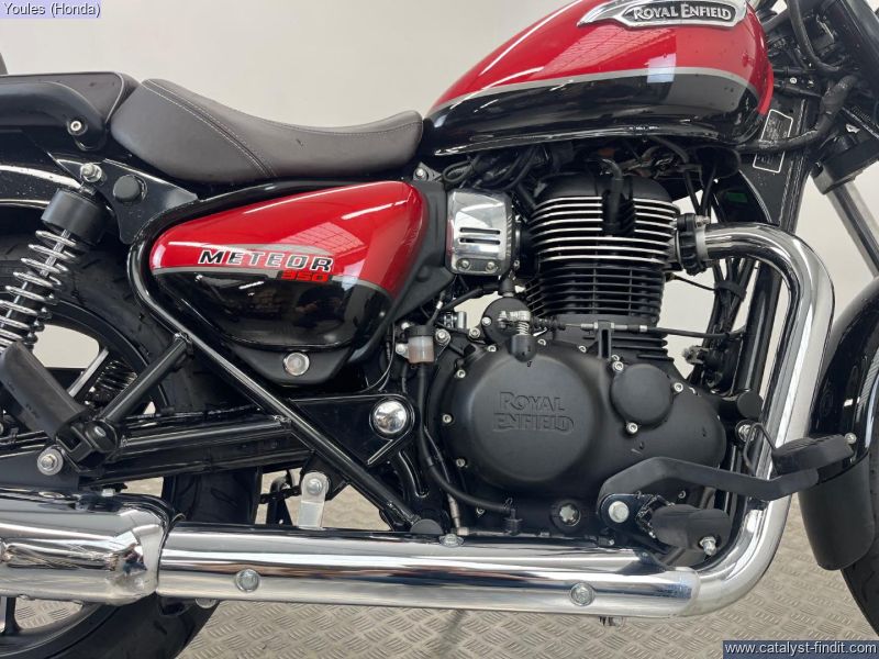 - This stunning Royal Enfield Meteor 350, finished in the eye-catching Supernova Red, is a brilliant example of one of the best modern classic cruisers on the market. Coming on a 23 plate and having covered under 1,500 miles from new, this bike is in excellent condition throughout. This Meteor benefits from some tasteful upgrades that make it stand out even further. It’s been fitted with a decat pipe, giving it a fantastic exhaust note that perfectly complements the bike’s classic thump. It also features OEM bar-end mirrors for that clean, stripped-back aesthetic and a Fuel X module, improving throttle response and overall rideability in all conditions. Key Features: • 23 Plate – under 1,500 miles from new • Finished in Supernova Red • Decat pipe – improved sound and performance • OEM bar-end mirrors • Fuel X module for smoother power delivery • In excellent condition throughout This is a fantastic opportunity to own a near-new Meteor with great extras already fitted — ready to ride and enjoy! Why Buy from Youles Honda? All our used bikes receive a 60-point safety check, including an oil and filter change if required and a full MOT. All technicians are factory trained. All bikes are HPI clear. Four months or 4,000 miles warranty, or the remainder of manufacturer’s warranty. Includes the Youles Lifetime Warranty. Please see our terms and conditions on our website. Cars and bikes of any age or condition taken in part exchange. Nationwide delivery service available. Finance options including Hire Purchase (HP) or Personal Contract Purchase (PCP) with low monthly payments. All used vehicles are subject to a £75.00 document fee. ?? Call Youles Honda Manchester on 0161 527 5020 to reserve or arrange a viewing today!