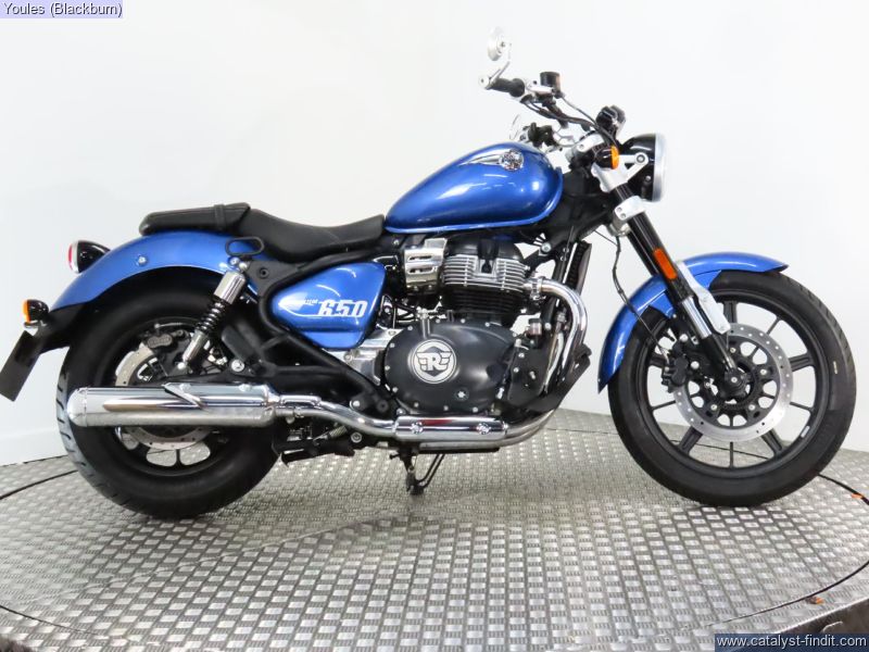 - Cracking Royal Enfield Super Meteor 650 in blue with only 950 miles on the clock! Comes fitted with Hagon rear shock and bar end mirrors, original shocks and mirrors included with sale. Full service history, 2 keys, owners manual and V5.