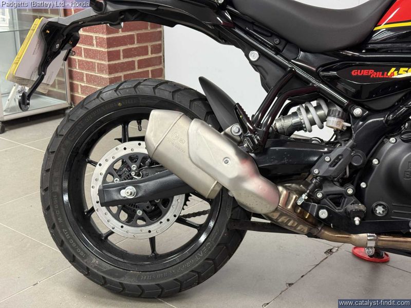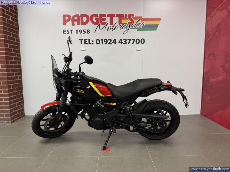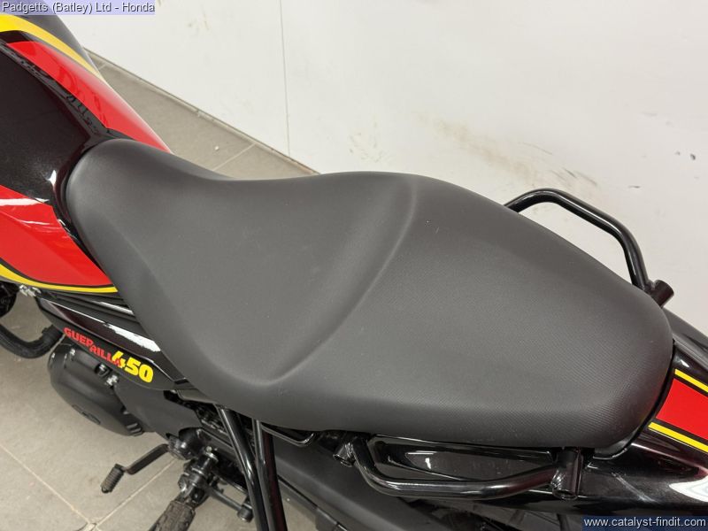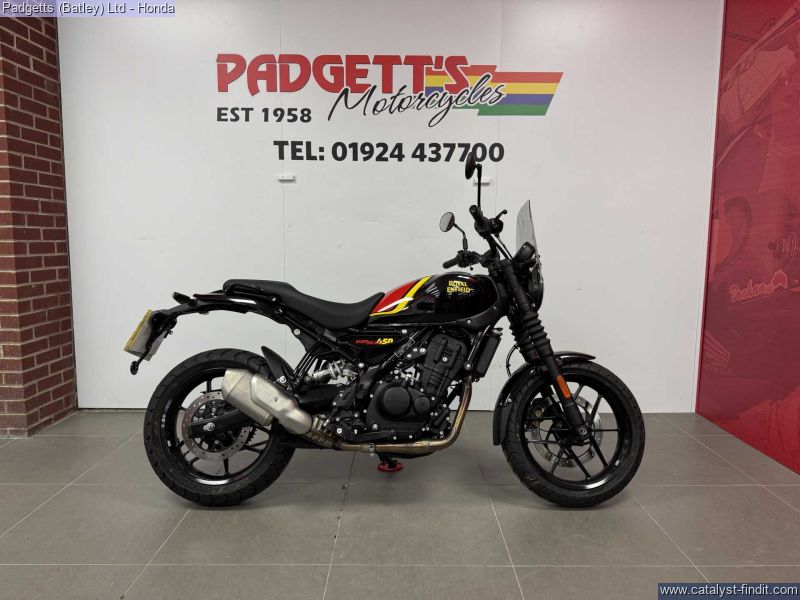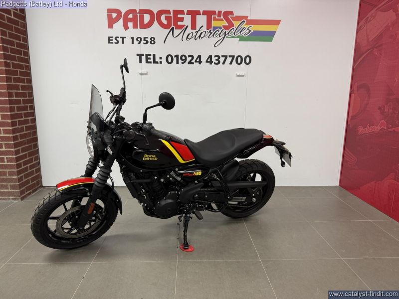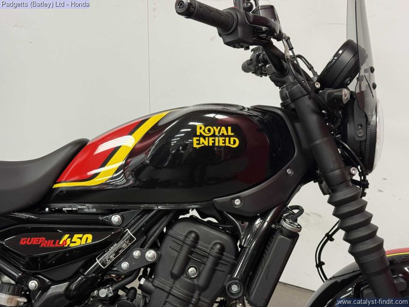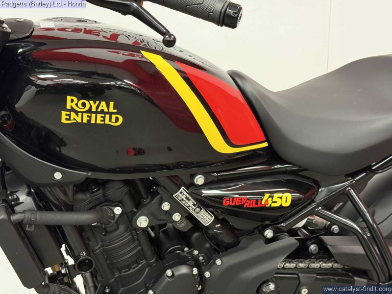 - We present here for sale this Royal Enfield Guerrilla 450 in Black. The bike has only covered 500 miles and is in great condition. The bike comes with some great extras including: - Tall Smoked Screen, Radiator Guard, Centre Stand, Pillion Grab Rail and Front Fender Extenda. The bike comes complete with Original Owner’s Manual including Service Record showing Full-Service History (1st Service @ 500 miles in October 2025), 2 Keys, and Log book. The bike is available for viewing and is well worth a look. Finance is available and is subject to status. Part Exchanges welcome. Nationwide delivery can be arranged from as little as £75. Usual Dealer Facilities including a large range of clothing, helmets & accessories. Call Padgett's Motorcycles today to ensure that you don't miss out; Suzuki Sales Centre 01924 609808, Honda Sales Centre 01924 437700 and Yamaha Sales Centre 01924 478491.