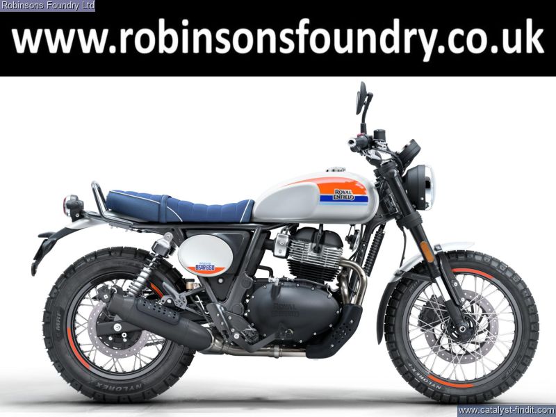 - The Royal Enfield Bear 650 is a modern scrambler built around the brand’s proven 648cc parallel twin engine, delivering around 47bhp and approximately 56.5Nm of torque through a smooth 6-speed gearbox. Designed to be A2-friendly and easy to ride, the engine is known for predictable power delivery and strong real-world usability, making it ideal for everyday riding as well as longer journeys. The bike focuses on usable performance and rider confidence rather than outright speed, staying true to Royal Enfield’s characterful and accessible riding philosophy.Built on a steel tubular double cradle frame, the Bear 650 features quality suspension including 43mm upside-down front forks and twin rear shocks, combined with dual channel ABS braking for confident stopping power. The 19-inch front and 17-inch rear wheel setup with dual-purpose tyres, generous ground clearance, and upright riding position give it strong capability on tarmac, country roads, and light off-road terrain. With a wet weight of around 214kg and a practical fuel tank capacity, it offers a stable and reassuring ride for a wide range of riders.The Boardwalk White finish give the Bear 650 a clean, modern scrambler look while retaining classic design details such as number board styling, wide handlebars, and minimal bodywork. Modern features include full LED lighting, Tripper navigation capability, USB-C charging, and switchable ABS, blending retro design with genuine modern usability. Overall, the Bear 650 delivers strong character, everyday practicality, and versatile performance in a distinctive scrambler package.All vehicle are subject to a comprehensive pre delivery inspection prior to collection and come with a minimum of 6 months MOT and 3 months/3000 mile warranty - with the option to extend (subject to T&Cs). HPI Checked. Walkaround videos and delivery available upon request. Secure with £100 deposit. Finance available (T&C's Apply).