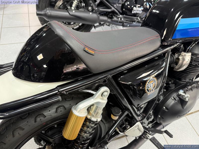 - Royal Enfield Continental GT 650 Twin The new Continental GT 650 Twin is an evolution of the Continental GT 535, which in turn, was an evolution of the Continental GT 250 - the original Royal Enfield British café racer. Powered by the all-new 650 Twin, it looks every bit like its predecessor and performs even better. Retaining the classic horizontal split running right through, the motorcycle's engine is elegantly cut off from the new bodywork with a dual cradle frame. The distinctive sculpted tank, clip-on handlebars and classic-styled instruments give the motorcycle's cockpit an authentic café racer vibe. Rear-set footrests and upswept exhausts allow for better lean angles – a café racer requisite for pulling off ton- ups. Just like in 60s London. It takes more than good looks to carve through a corner. The design and development team applied its many years of accumulated know-how while setting key parameters like steering rake, ground clearance, and lean angle, to create the perfect ride for this sports inspired cafe-racer. The Continental GT is a motorcycle that delights in the way it handles on the road, responding to the rider's desires by feeling focused and integral while offering light and agile handling, allowing anyone to enjoy it. A modern interpretation of a cultural icon, part of the original British café racing scene, an expression of free spirit and a declaration of style. Drawing inspiration from the café racer culture of 1950s and 60s, the new Continental GT 650 Twin recaptures the spirit of our Continental GT 250. A design icon, the perfect blend of tradition & modernity, with its sculpted tank, eager attitude and a tucked-in riding position, all hallmarks of a traditional café racer, is perfect for carving up the back roads or a ton of fun in the city. The frame, developed in conjunction with the legendary Harris Performance, thoroughly tested for durability, offers superior balance and handling. Together with the finely tuned suspension with ‘piggy-back’ gas- charged twin shocks for optimum blend of comfort & feel, the chassis ensures the GT 650 is a dynamic ride, lively and agile scratching through those back-lanes. The new GT650 echoes its predecessors’ style, but it’s a whole new motorcycle. Its ergonomics offers an easy reach to the clip-on bars, for an optimum mix of steering feel and comfort. The rear-set footrests improve cornering clearance, canting the rider forward, into a sporty ‘at-one’ feeling with the GT, making it fun on a quick spin or scratching down their favourite local roads. Classic aesthetics of 18" alloy-rimmed wheels are shod with Pirelli Phantom SportComp tyres the structure and the compound of which were especially developed for Royal Enfield to complement the chassis and suspension in all riding conditions. The combination of twin-piston Brembo derived callipers on floating front disc and Bosch dual-channel ABS provide assured braking with progressive feedback.