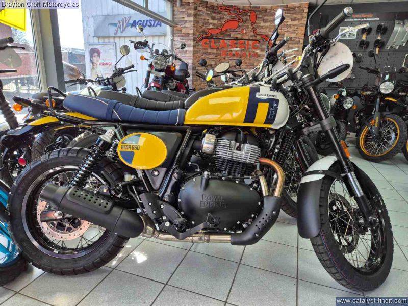 - The Bear 650 embodies the spirit of a 16-year-old rookie who, in 1960, lined up alongside hundreds of sideburned hopefuls, all hungry to win the wildest race the Californian desert had ever known—the Big Bear Run. Fuelled by the gut and powered by Royal Enfield’s proven 650cc parallel twin engine. Cased in a highly durable, premium black finish, it looks rugged and purposeful, amplifying the Scrambler attitude.