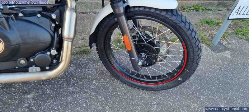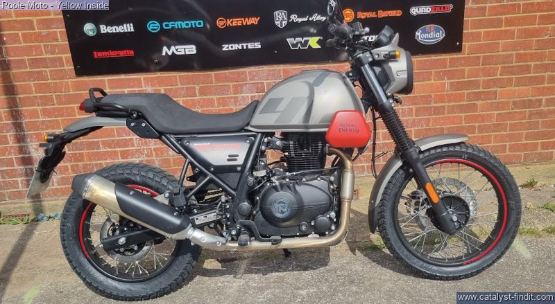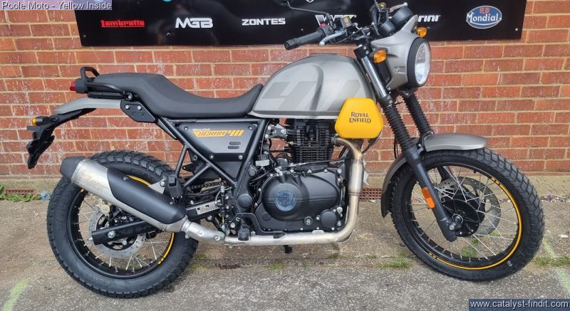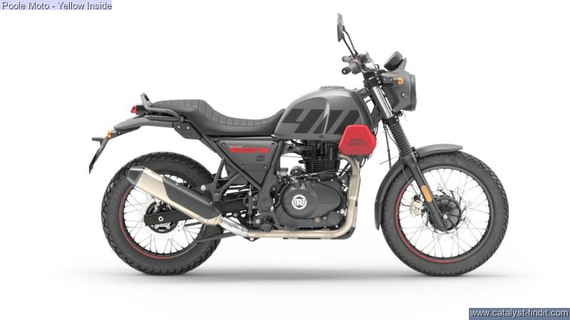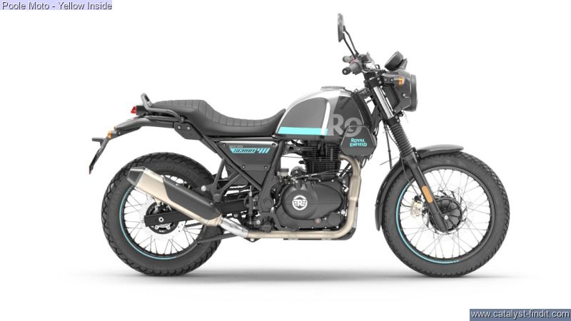 - Royal Enfield Scram 411. Ready... Set... Scram!ROYAL ENFIEL SCRAM 411. READY... SET... SCRAM!Today's world is full of opportunities. And obstacles too. It demands constant switching between modes. Work and play, night and day, rough and smooth, stop and go, fast and slow. The scram 411 is built for this state of flux. Royal Enfield's high-altitude adventurer DNA has evolved from decades of expeditions and thousands of miles of rides across the most challenging terrains in the world. The scram 411 is derived from this very DNA. It is a multi-purpose tool optimised for agility, an ally that's always ready for whatever life has in store. his is no cosmetic crossover or pumped-up street bike – this is a brand new subspecies. Scram mode is about navigating the urban game of snakes and ladders. The scram's high- altitude proven 410 engine makes for fewer gear changes and easy manoeuvring through the urban maze so that you can go with the flow. 19" front and 17" rear wheels help this machine take on anything that is thrown its way, while a low 795mm seat height keeps the rider comfortable on longer rides. Modern life demands a constant switching between modes. Wire spoked wheels and dual-purpose tires ensure a sure-footed grip and effortless agility across the tarmac, rough roads and dirt tracks. Long travel suspension and high ground clearance ensure an easy ride over tricky terrain – because the scram 411 is built to handle whatever life throws at you. The scram 411 was created by mixing genuine adventurer capability with scrambler playfulness and accessibility. Details like the urban badge plate, an offset speedo, a scrambler seat and five high-energy colourways tell you that this is no ordinary motorcycle. This is the scram 411.