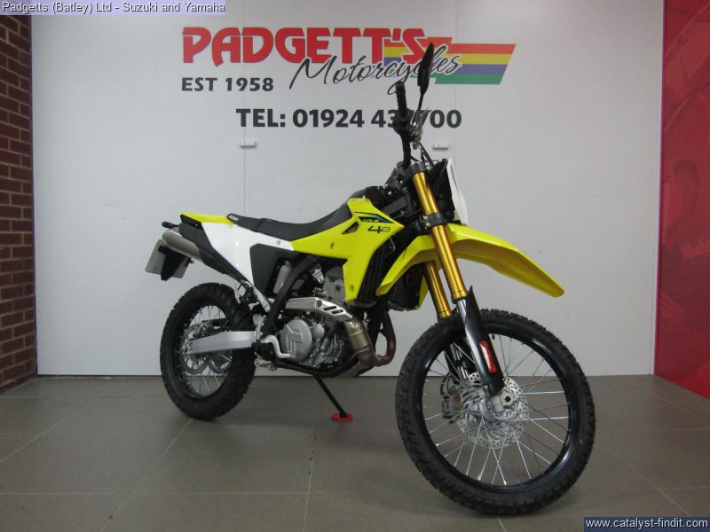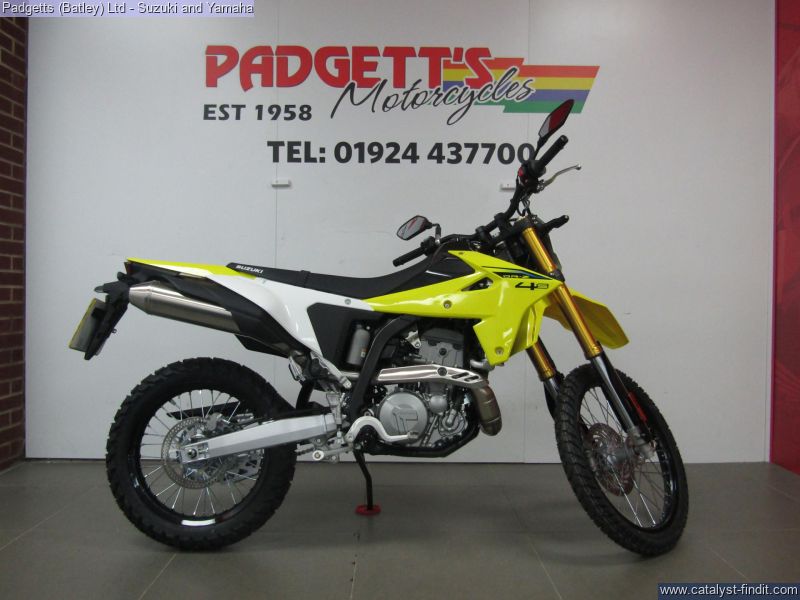 - We present here for sale this 2026 Suzuki DR-Z4. DR-Z4S - YOUR WORLD. YOUR PLAYGROUND. Equipped with a punchy, new single-cylinder engine tuned for low-down torque and responsive power delivery, a new chassis for superior handling, and a cutting-edge electronics package tailored for off-road adventures, the all-new DR-Z4S is ready to turn your world into your playground. DUAL SPORT PERFORMANCE. The compact 398cc, liquid-cooled, DOHC engine that powered the original DR-Z400 became known for its performance, but also its robustness and reliability. One feature that helped enable it to develop this reputation was its dry sump lubrication system, which helped give greater levels of ground clearance. Suzuki has redesigned the engine for 2025, ensuring it hits all of its required legislation targets without sacrificing reliability and performance, making sure it produces an abundance of torque across its operating range and delivering a smooth, linear throttle response. The bike is available for viewing and is well worth a look. Finance is available and is subject to status. Part Exchanges welcome. Nationwide delivery can be arranged from as little as £75. Usual Dealer Facilities including a large range of clothing, helmets & accessories. Call Padgett's Motorcycles today to ensure that you don't miss out; Suzuki Sales Centre 01924 609808, Honda Sales Centre 01924 437700 and Yamaha Sales Centre 01924 478491.