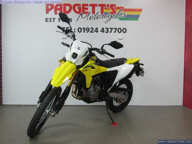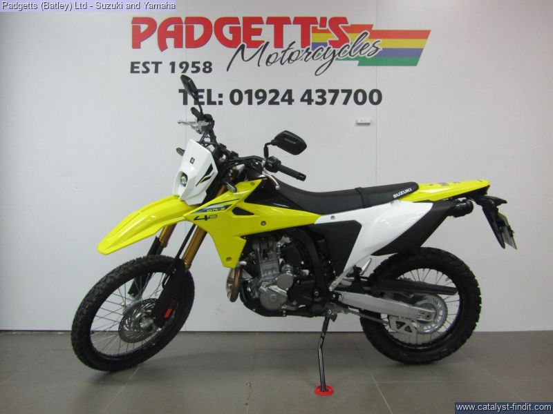 - We present here for sale this Suzuki DR-Z4. DR-Z4S - YOUR WORLD. YOUR PLAYGROUND. Equipped with a punchy, new single-cylinder engine tuned for low-down torque and responsive power delivery, a new chassis for superior handling, and a cutting-edge electronics package tailored for off-road adventures, the all-new DR-Z4S is ready to turn your world into your playground. DUAL SPORT PERFORMANCE. The compact 398cc, liquid-cooled, DOHC engine that powered the original DR-Z400 became known for its performance, but also its robustness and reliability. One feature that helped enable it to develop this reputation was its dry sump lubrication system, which helped give greater levels of ground clearance. Suzuki has redesigned the engine for 2025, ensuring it hits all of its required legislation targets without sacrificing reliability and performance, making sure it produces an abundance of torque across its operating range and delivering a smooth, linear throttle response. The bike is available for viewing and is well worth a look. Finance is available and is subject to status. Part Exchanges welcome. Nationwide delivery can be arranged from as little as £75. Usual Dealer Facilities including a large range of clothing, helmets & accessories. Call Padgett's Motorcycles today to ensure that you don't miss out; Suzuki Sales Centre 01924 609808, Honda Sales Centre 01924 437700 and Yamaha Sales Centre 01924 478491.