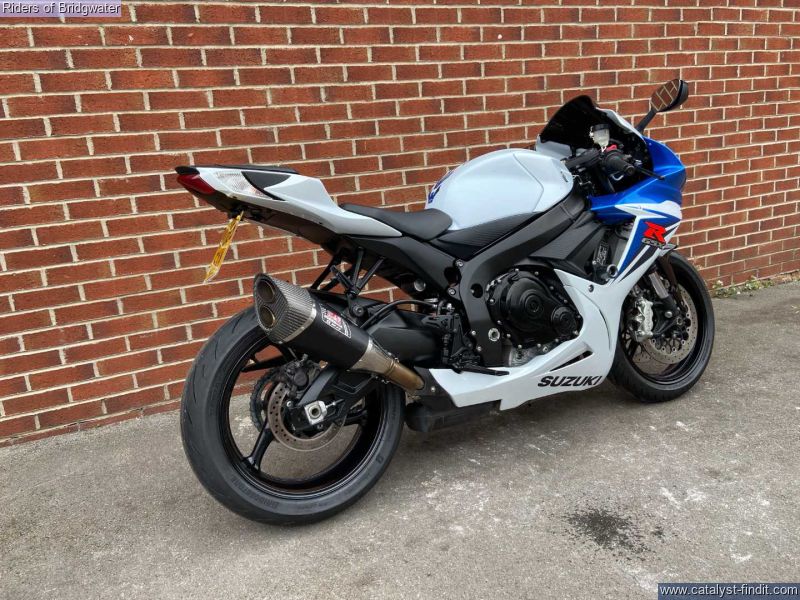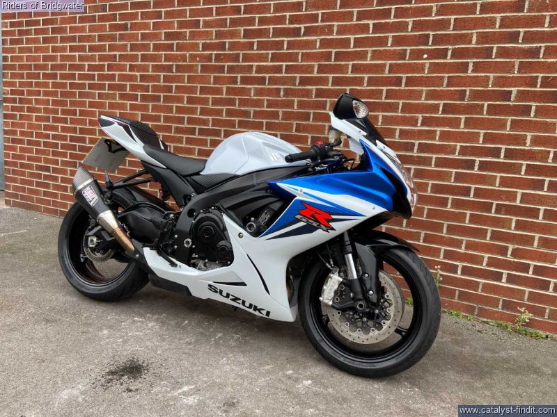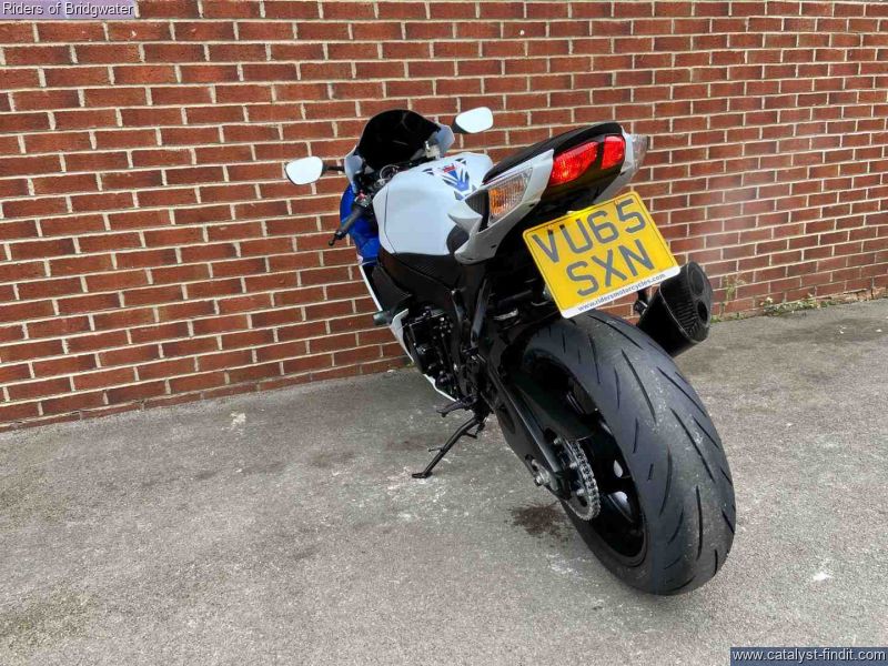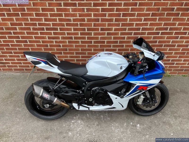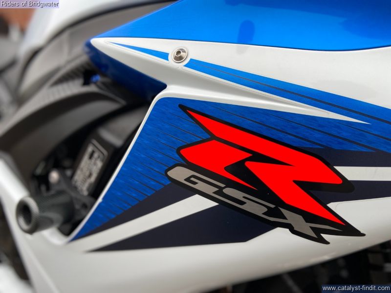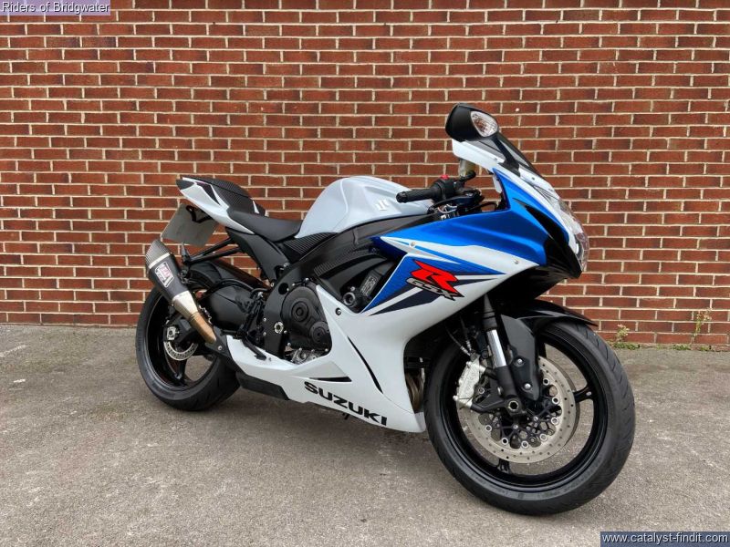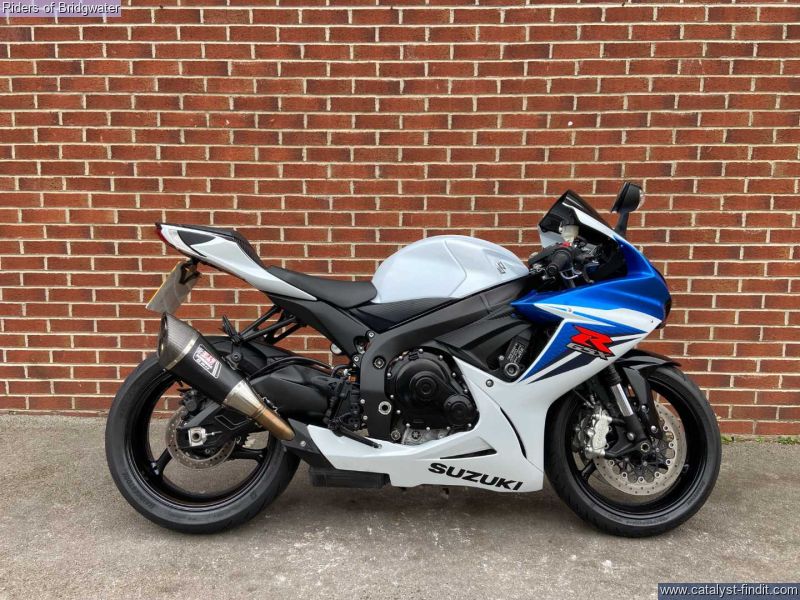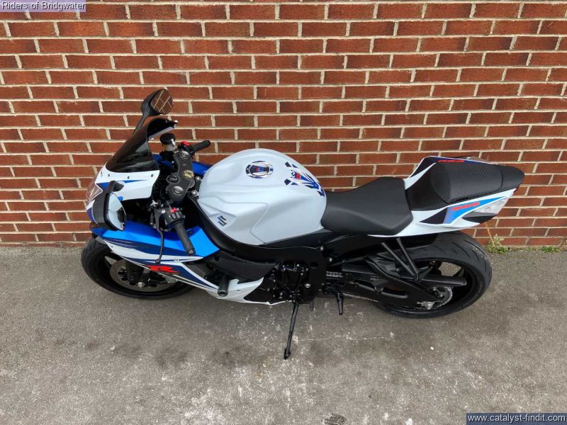 - Suxzuki GSXR600 in blue and white, fitted with a tail tidy, Yoshi end can, crash bobbins, a classic looking super sport!