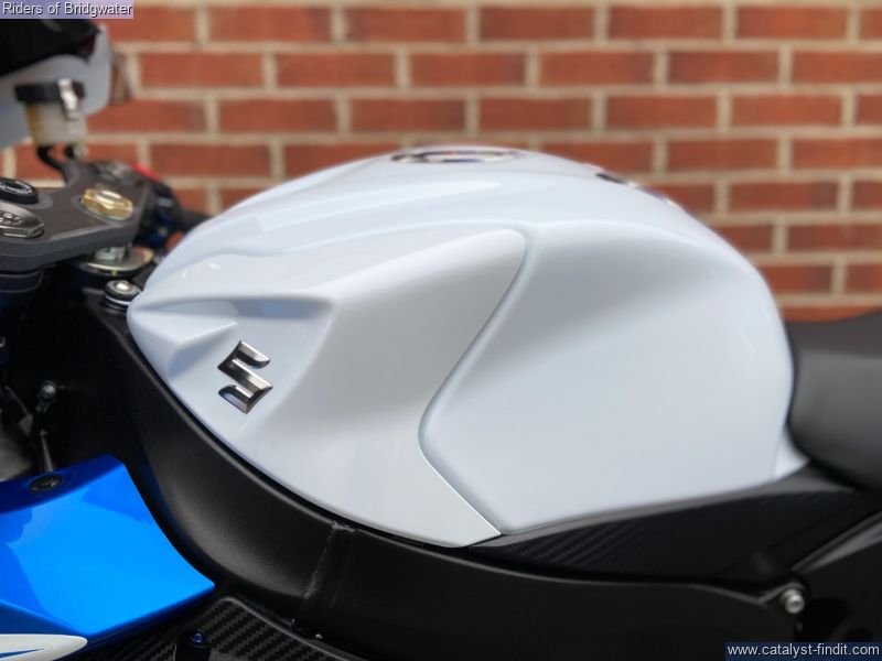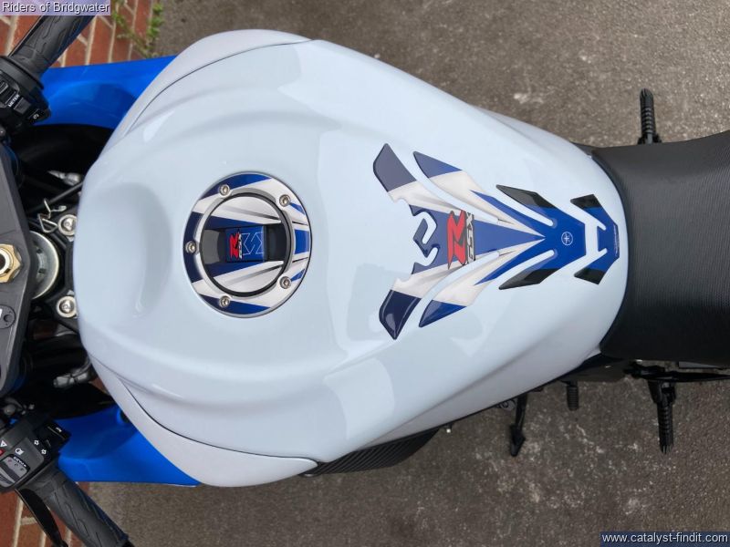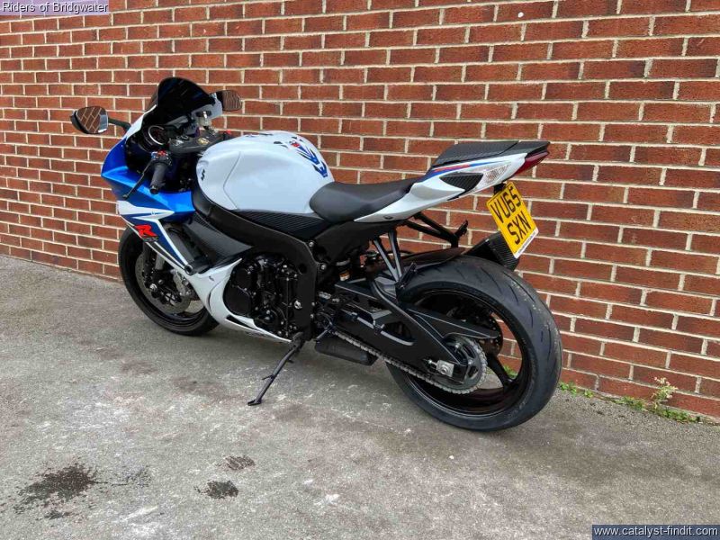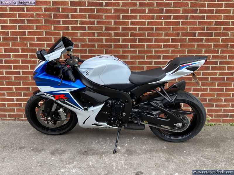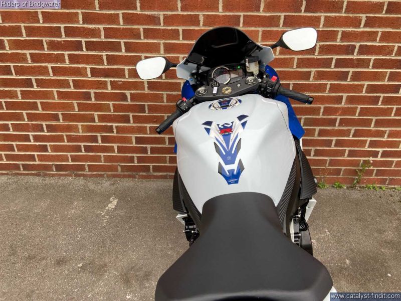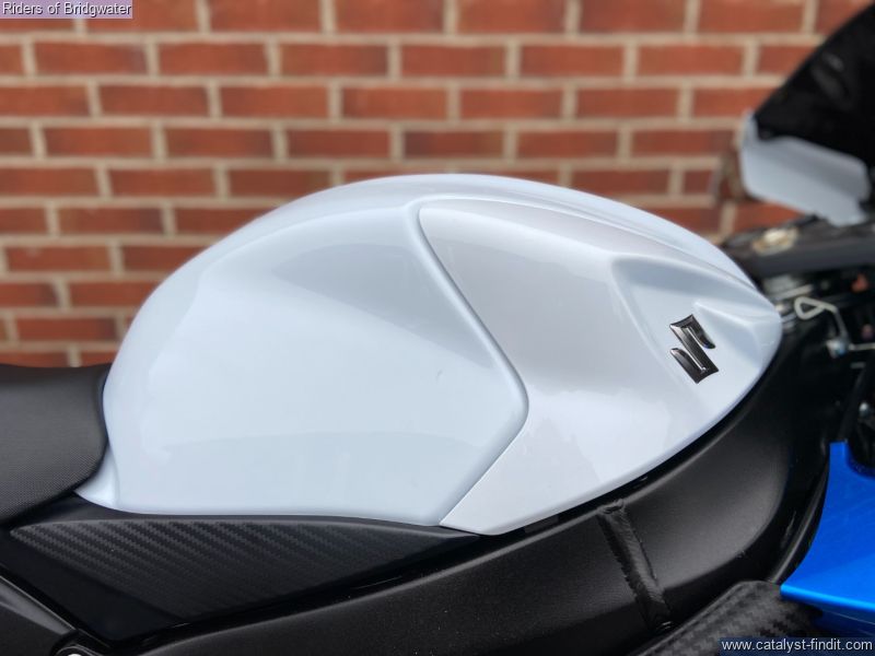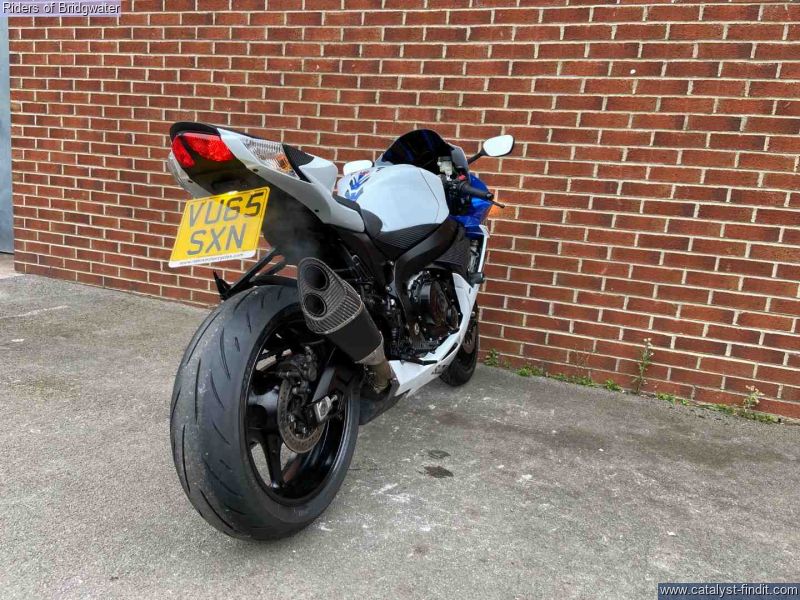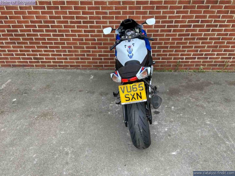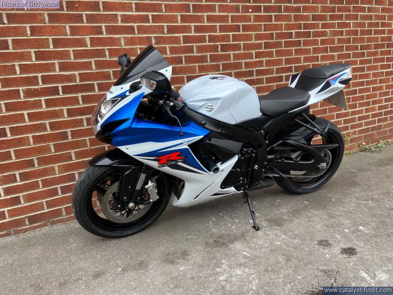 - Suxzuki GSXR600 in blue and white, fitted with a tail tidy, Yoshi end can, crash bobbins, a classic looking super sport!