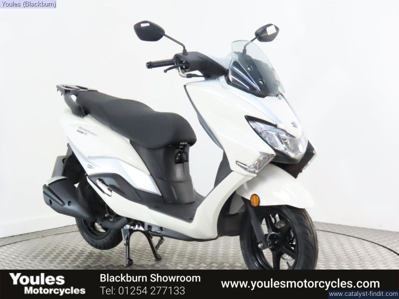 - PRE REG WITH 0 MILES in stock at our Blackburn Store this Suzuki Burgman Street 125EX in White is Luxury, sophistication and style. With its elegant appearance, intelligent features and economical Suzuki Eco Performance Alpha (SEP-a) engine this scooter means business. Boasting smartphone charging, start-stop technology, LED lighting, 21.5L underseat storage² and a standard rear carrier the Burgman will bringing you wherever you need to go in comfort and style.