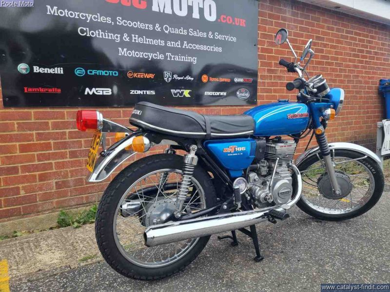 SUZUKI GT185 185cc Previous Slide ◀︎ Next Slide ▶︎ 11 SUZUKI GT185 185cc £3,995 £3,995 Details fresh as of 31/10/2025 16:00 Call: 01202 621768 Email Dealer Locate Dealer Website Share | Save Print Email a Friend Item Details 11700 Miles185 cc Details Stock number: 9481Colour: BLUENew/Used: Used Dealer Address Poole Moto Poole Moto514 Blandford RdPooleDorsetBH16 5EG