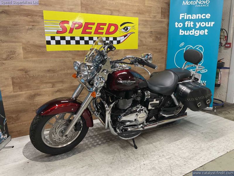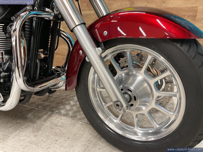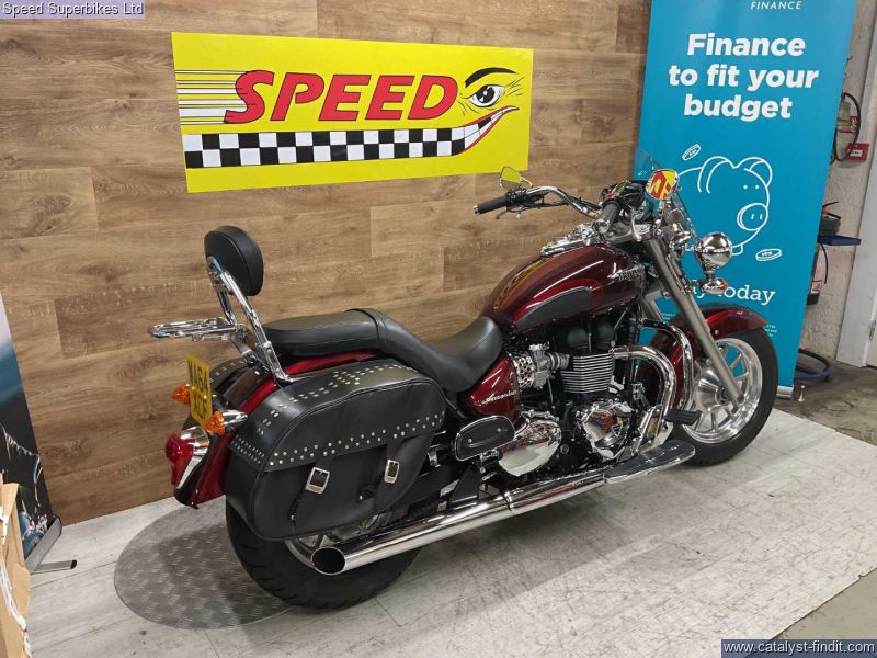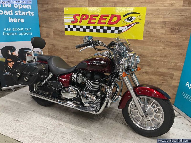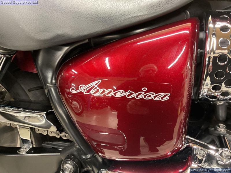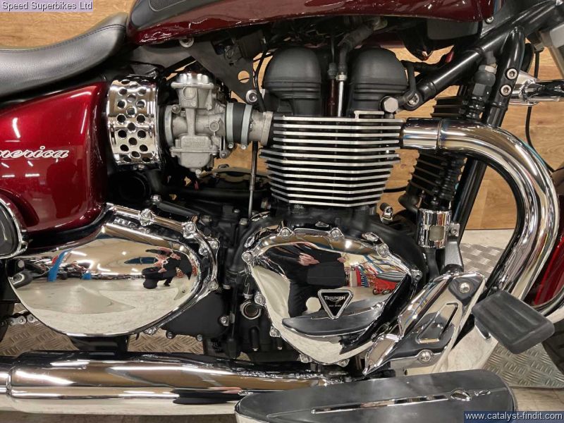 - 2014 Triumph Bonneville America 865, only 5698 miles and 4 owners from new, hand and service books with 10 stamps plus spare key, MOT until 03/07/2026, the bike is in excellentcondition and comes fitted with soft panniers, summer screen, comfort seat, back rest and rack, rider and pillion foot boards, runnng lights and a chrome chain guard. The Triumph America is a cruiser with real cred, it harks back to the Thunderbird and other Triumphs modified in the States in the 60s and 70s. This means the Triumph America is not regarded as a Harley clone or copy as are many other Japanese cruisers. It’s a competent motorcycle too. The Triumph America is a pleasure to ride and well put together. Retail bikes: Competitive finance & great part exchange allowances. Call our team for an easy, no obligation quote. All our retail bikes come with a full PDI, valet & 3 months total cover warranty (additional £75). Credit & debits cards accepted. Delivery in mainland UK from only £125 + VAT. Compulsory admin fee of £100 for 3rd party finance.