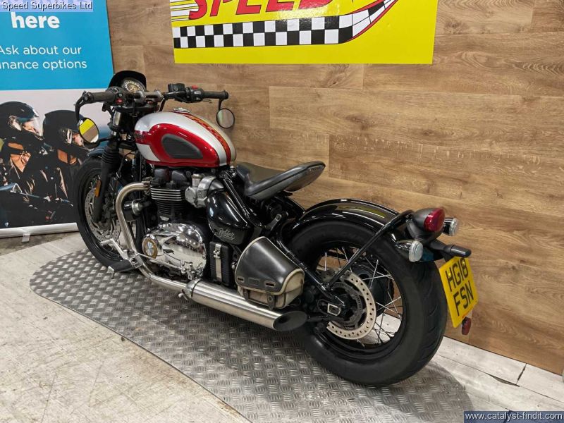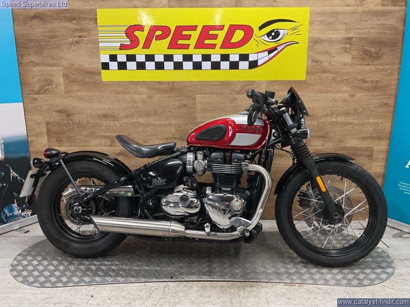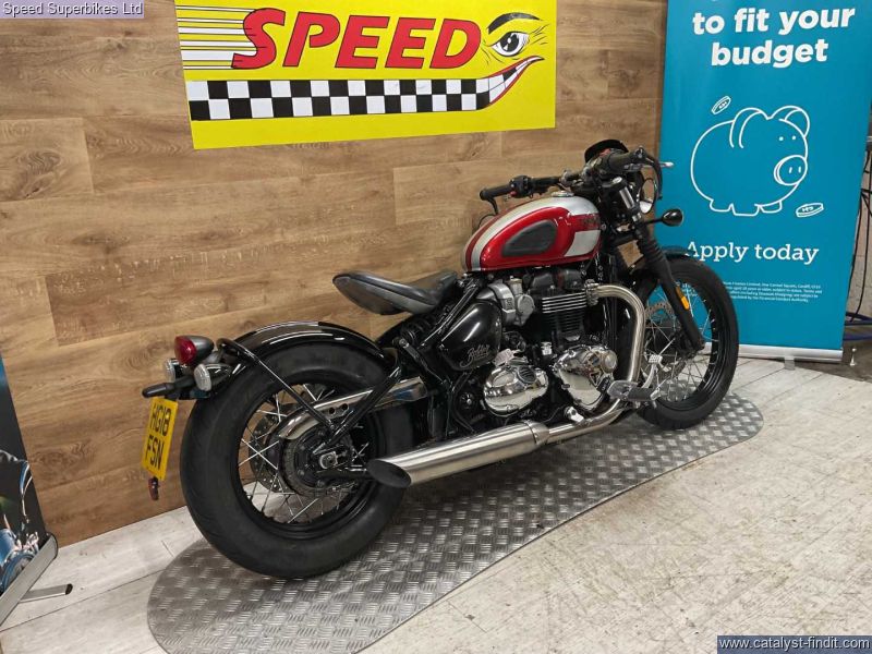 - Triumph, bonnie bobber, red, 2018, 18330 miles, 3 owners from new, hand book, service book, last serviced 05.25 at 16425 miles,8 stamps in the service book, Retail bikes: Competitive finance & great part exchange allowances. Call our team for an easy, no obligation quote. All our retail bikes come with a full PDI, valet & 3 months total cover warranty (additional £75). Credit & debits cards accepted. Delivery in mainland UK from only £125 + VAT. Compulsory admin fee of £100 for 3rd party finance. mot expires 05.26 so bike will come with 12mnths mot, spare key, great all around condition,