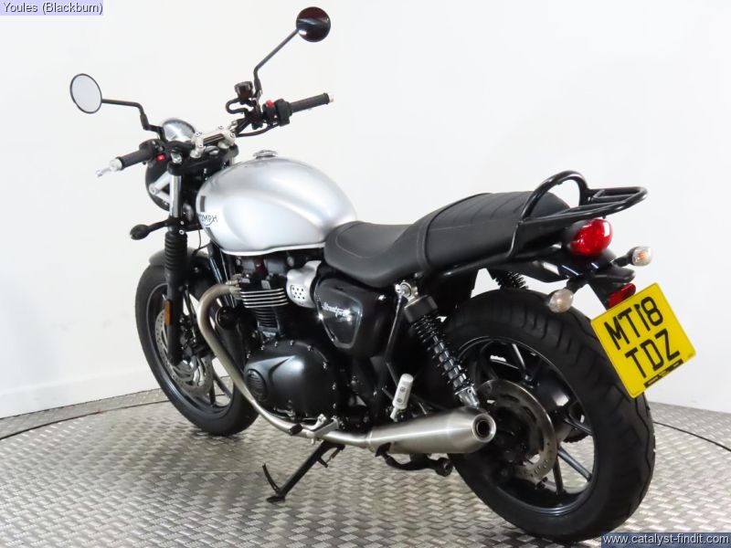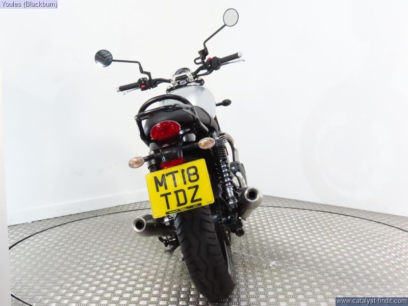 - Triumph Bonneville Street Twin 900 in Silver, 2018, 8083 miles, Service history, Rear Rack, Center Stand, Bobbins, Rad Guard, Alarm, Data Tag.