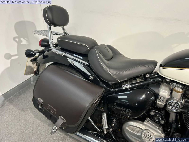 - Triumph Speedmaster 1200, a fantastic looking machine, modern functionality with classic looks. This one is in great condition with only 6990 miles from new, 2 keys and 3 service stamps. Fitted with a Dart screen, passenger backrest and genuine triumph leather saddlebags.