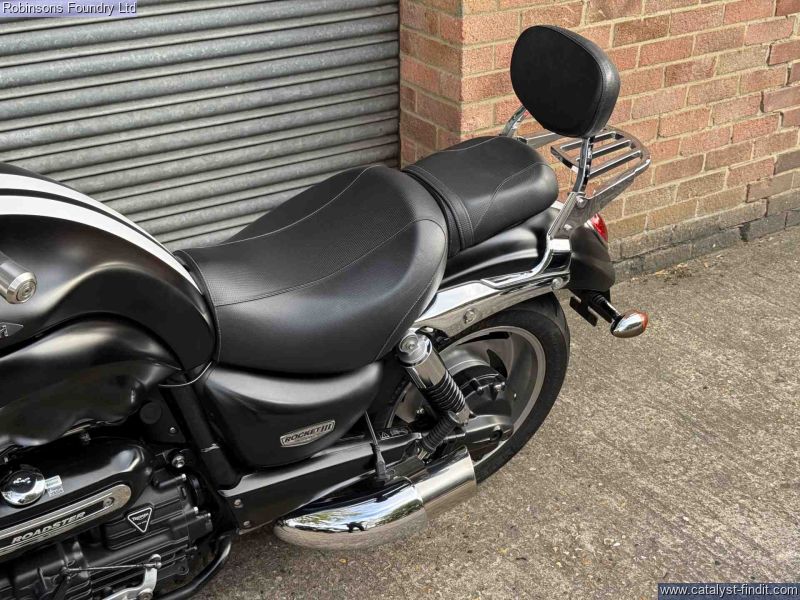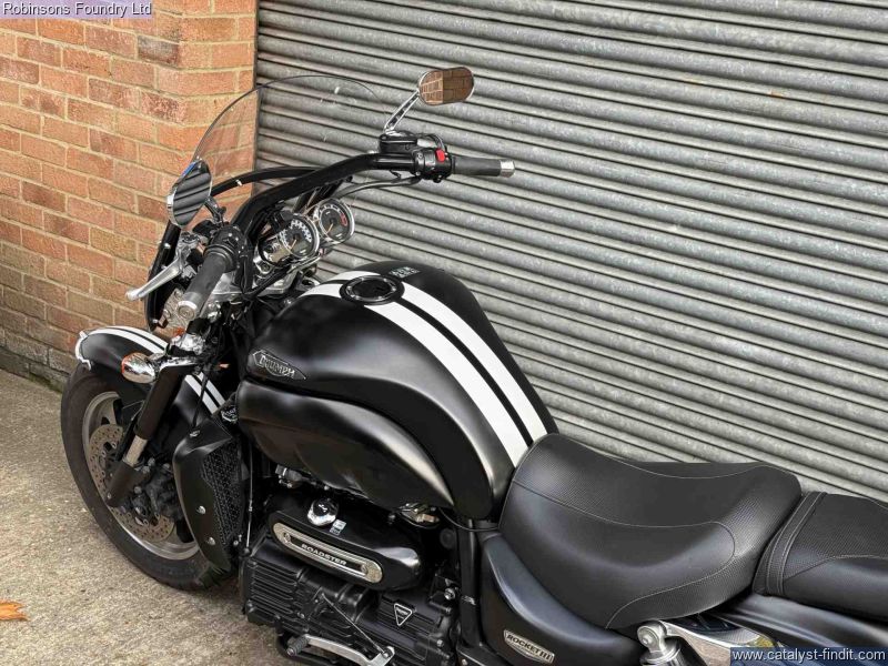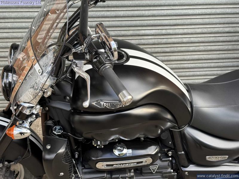 - This 2016 Triumph Rocket III is a beautifully presented example of Triumph’s legendary power cruiser, priced at £8,750. Fitted with a selection of tasteful upgrades, including tall handlebars, a touring windscreen, pillion backrest, USB charger, and a headlight upgrade, it’s perfectly set up for comfort and long-distance riding. With its colossal 2.3-litre triple engine and unmistakable road presence, the Rocket III delivers effortless torque and a truly commanding ride. Well cared for and thoughtfully enhanced, this example combines performance, practicality, and style in one seriously impressive machine. All vehicles are subject to a comprehensive pre delivery inspection prior to collection and come with a minimum of 6 months MOT and 3 months/3000 mile warranty - with the option to extend (subject to T&Cs). HPI Checked. Walkaround videos and delivery available upon request. Secure with £100 deposit. Finance available (T&C's Apply). Our used stock changes constantly please contact us if you cannot see what you are looking for.