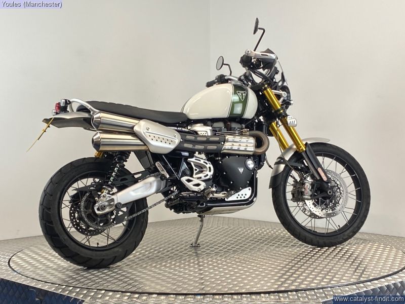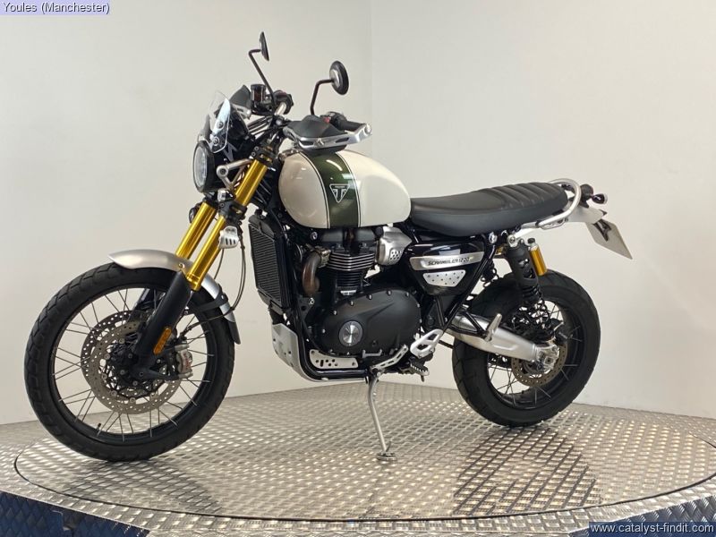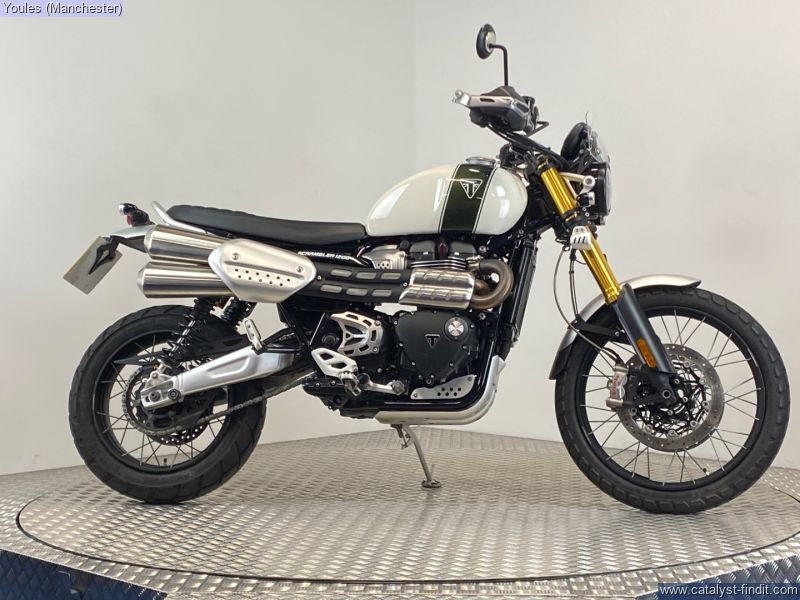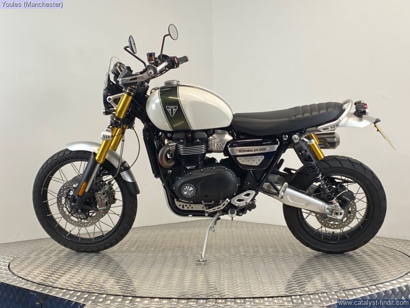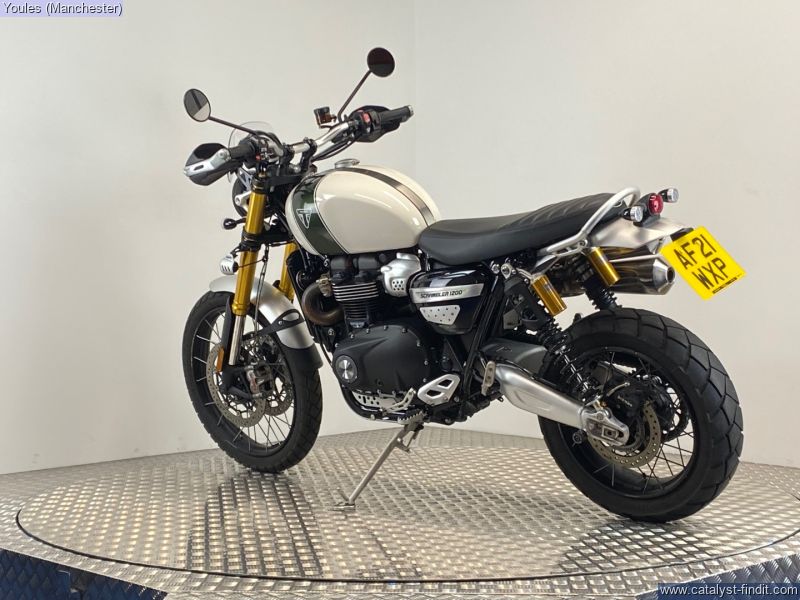 - TRIUMPH SCRAMBLER 1200 XE IN WHITE ON A '21 REG WITH 4800 MILES.