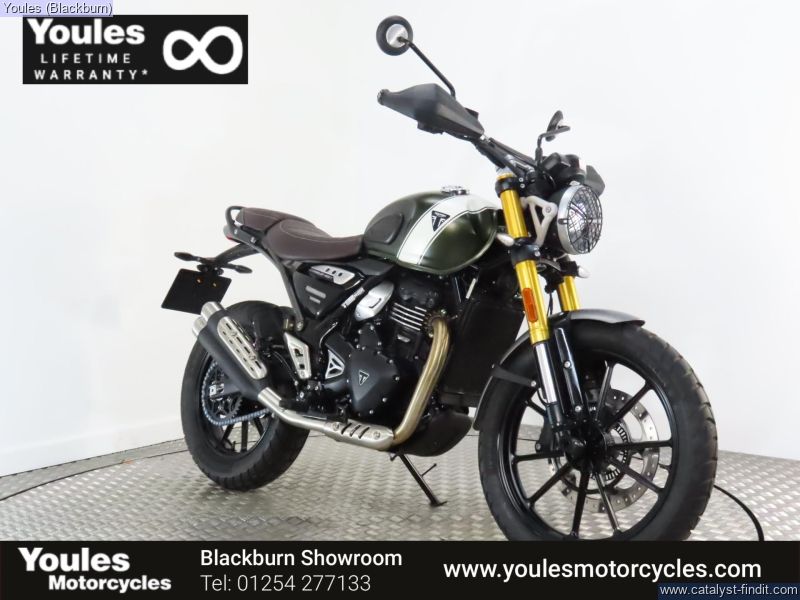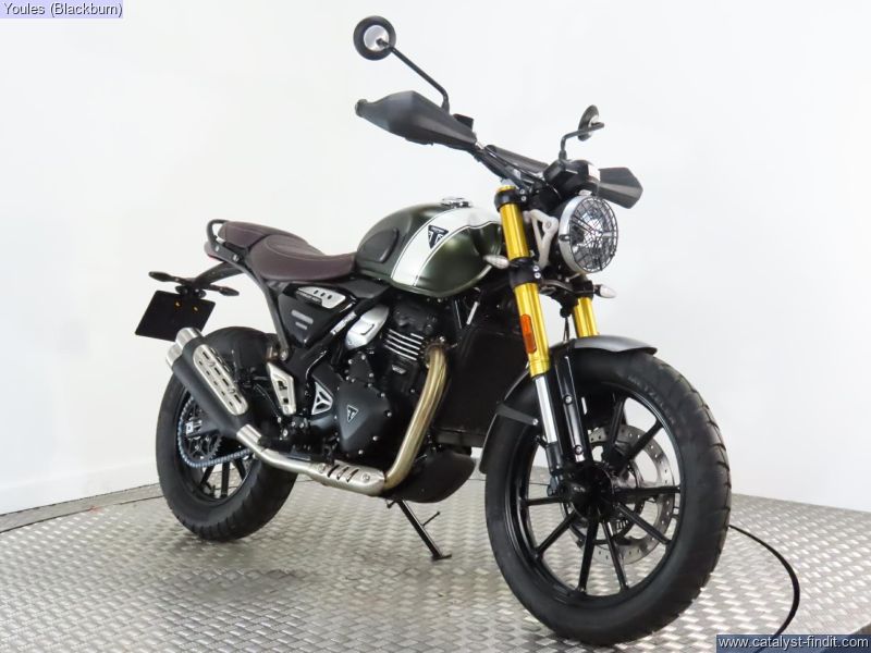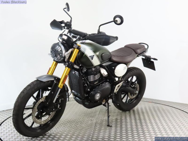 - FANTASTIC condition 75' plate Triumph Scrambler 400x in matt green with a mere 555 miles on the clock and Triumph warranty until 02/09/2027.