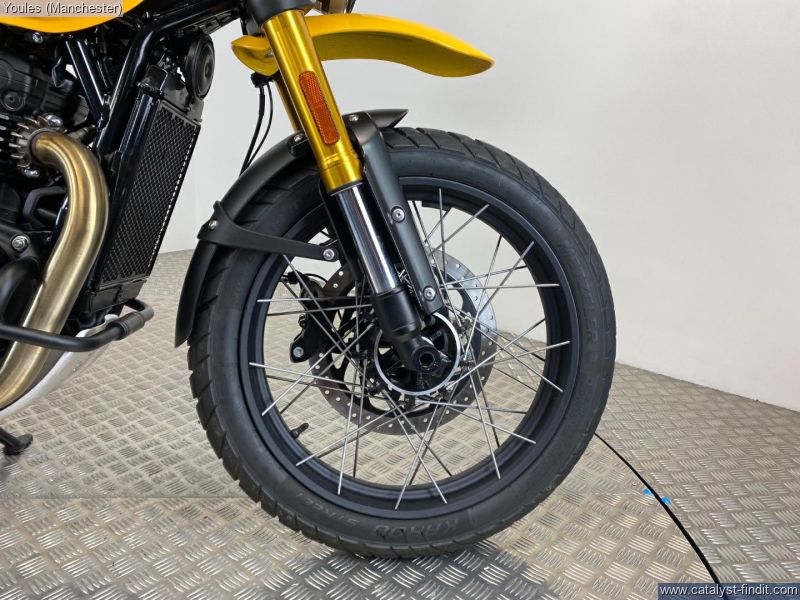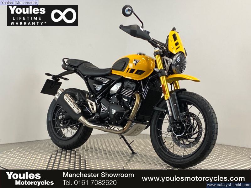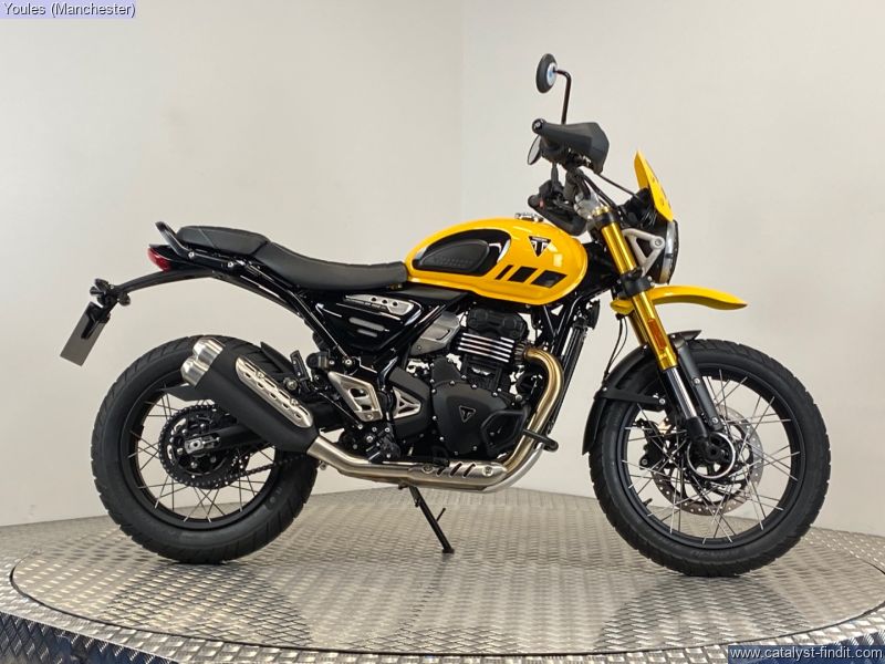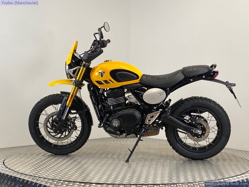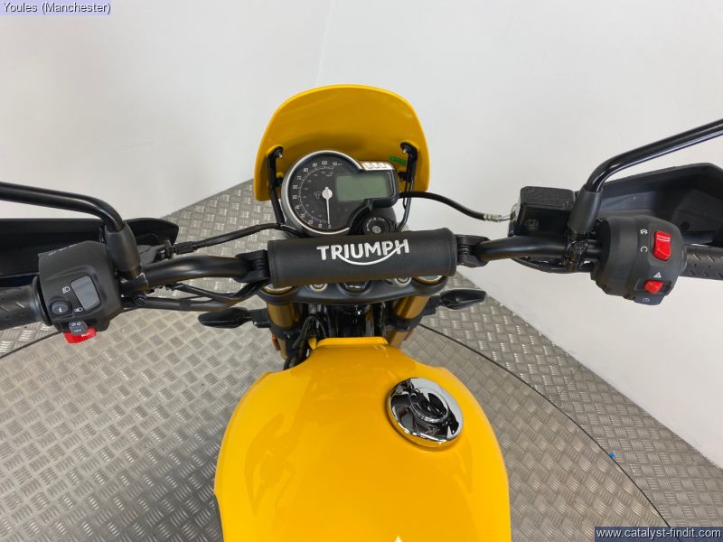 - TRIUMPH SCRAMBLER 400 XC IN YELLOW ON A 75 REG WITH ONLY 472 MILES ON THE CLOCK FROM NEW AND WILL COME WITH A FULL TRIUMPH SERVICE HISTORY AND REMAINDER OF THE GENUINE MANUFACTURERS WARRANTY UNTIL SEPTEMBER 2027