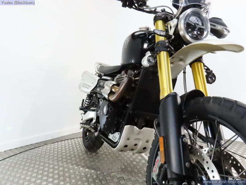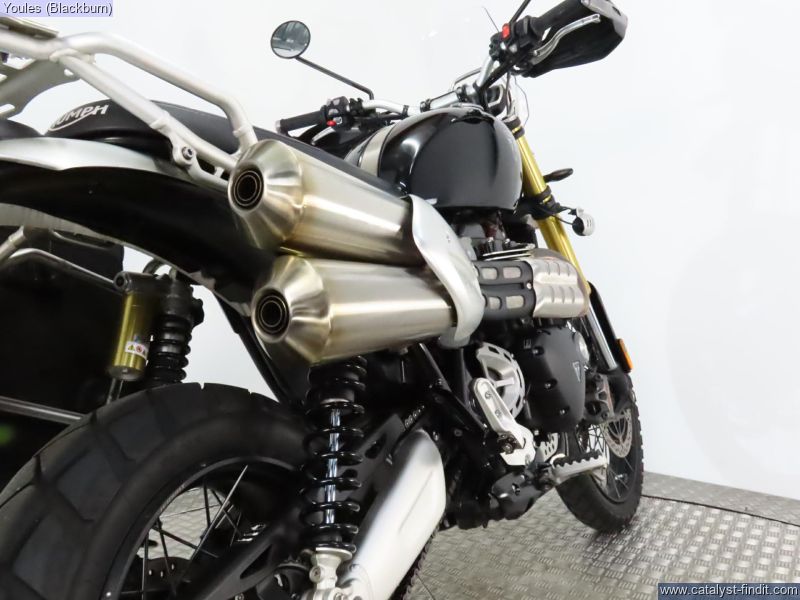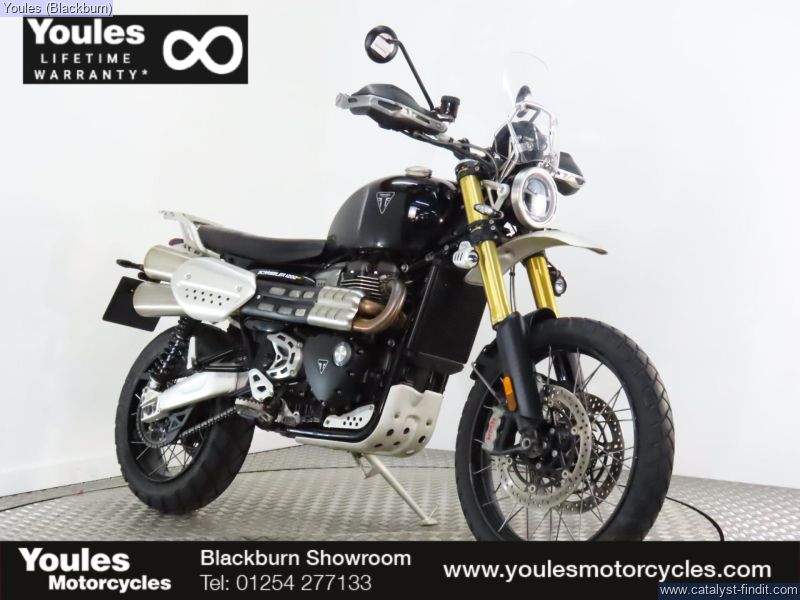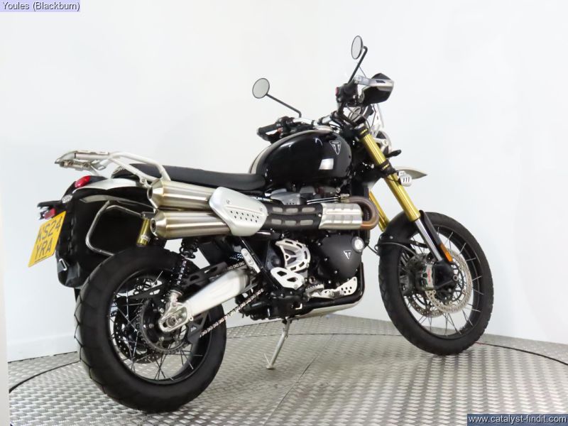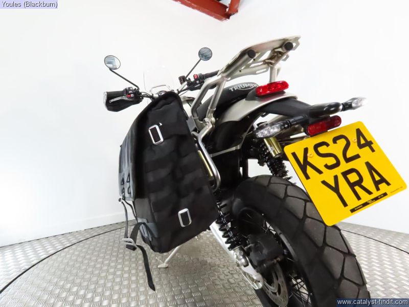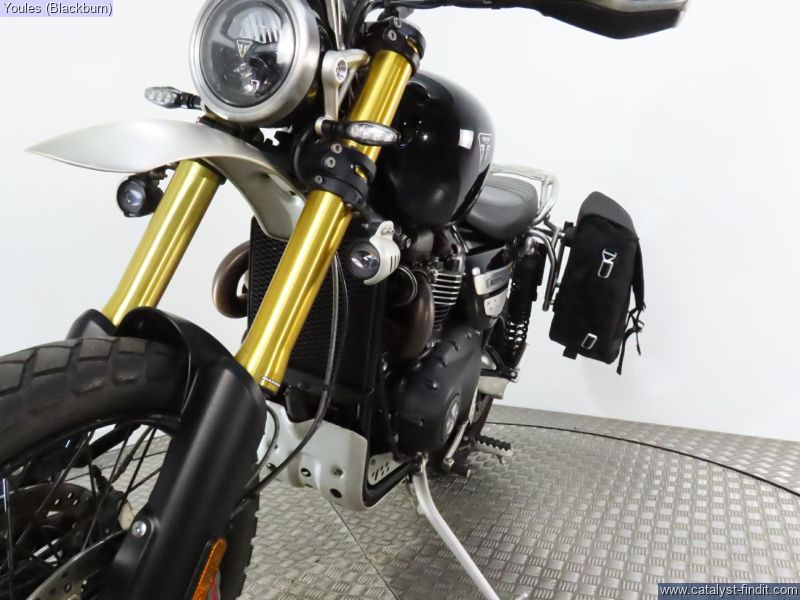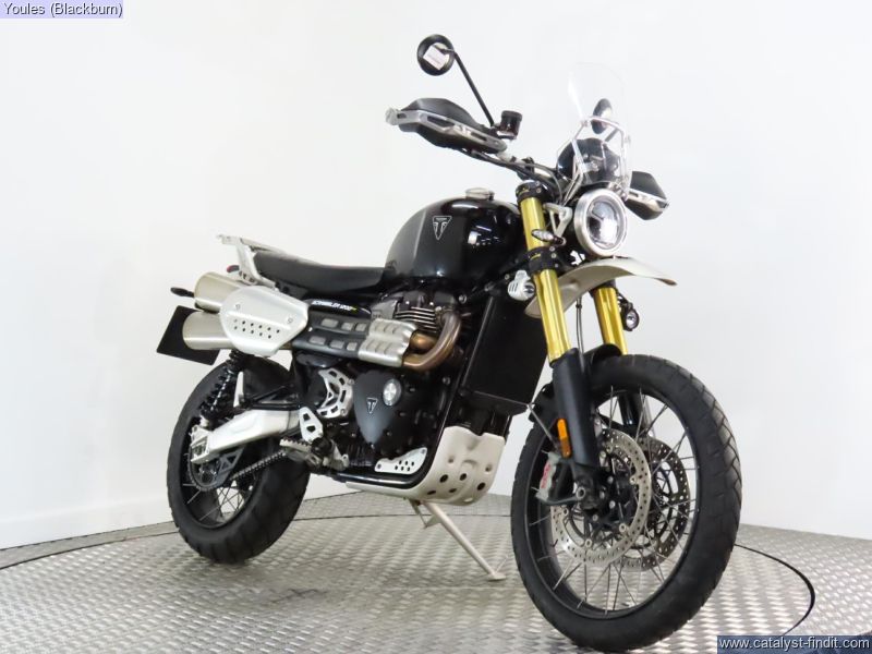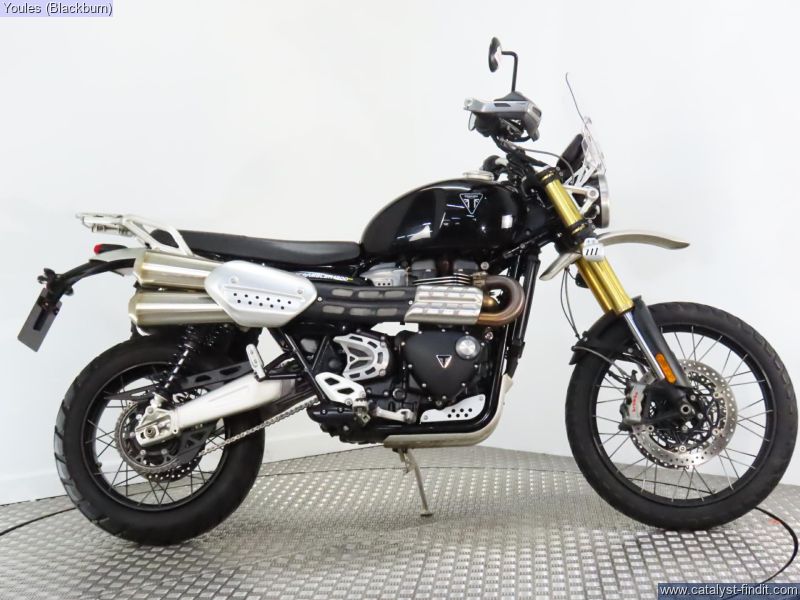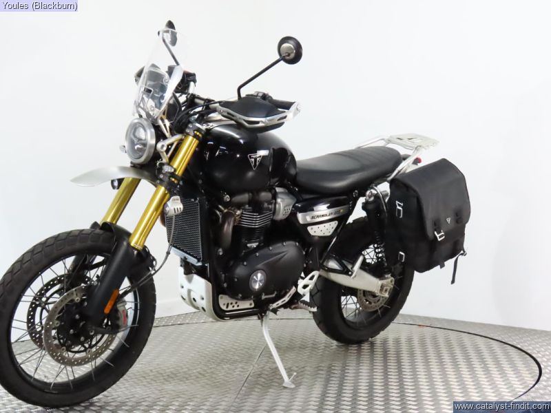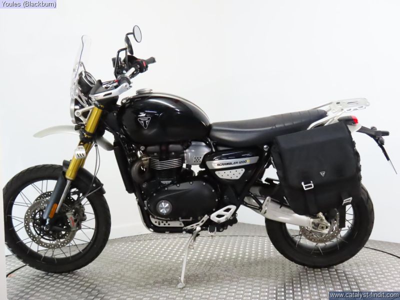 - STUNNING condition Triumph Scrambler 1200 XE on a 24' plate with only 6461 miles on the clock and loaded with extras!! These include a rear rack, rugged side pannier, touring screen, high mudguard, fog lights and heated grips. Totalling £2000 including fitting so this bike offers a superb saving!
