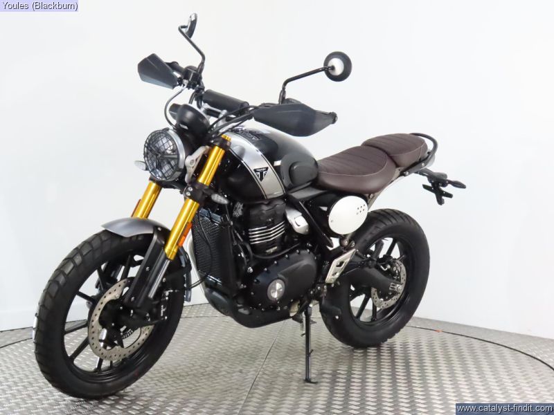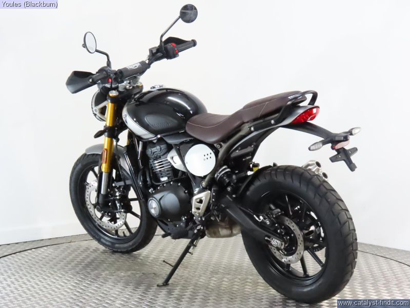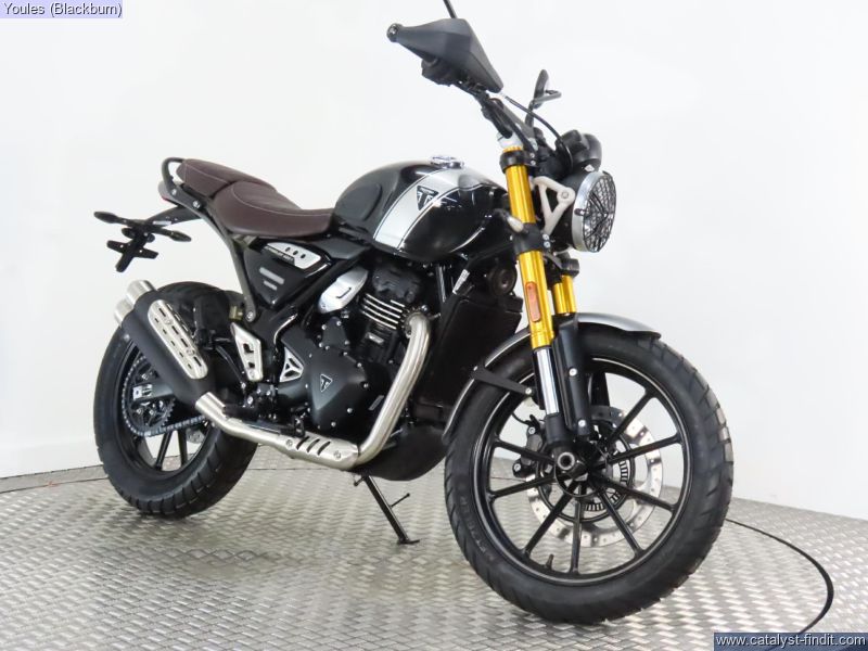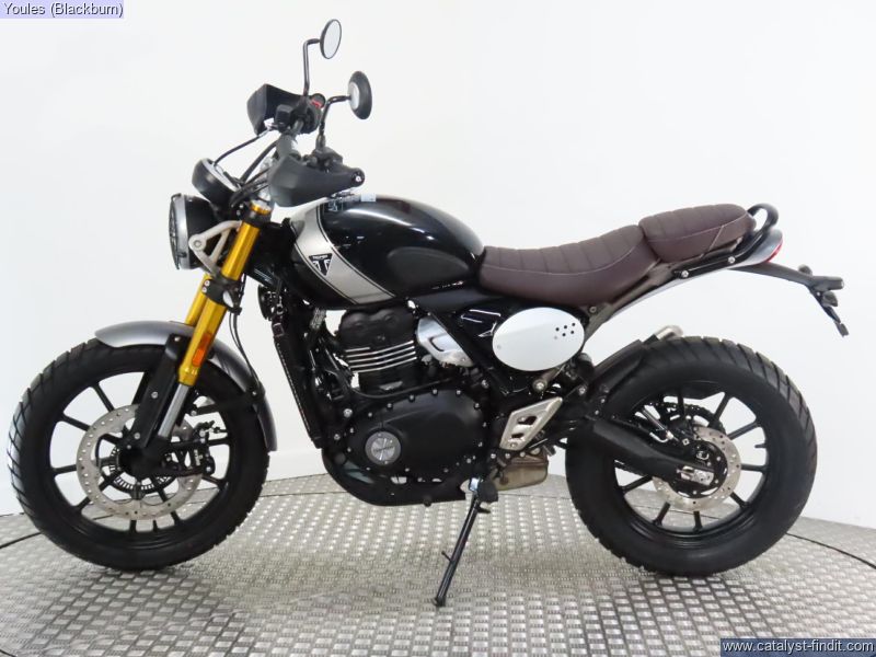 - With its timeless Scrambler silhouette and distinctive ribbed bench seat, the Scrambler 400 X has unmistakable Triumph style, with a premium finish and a class-leading specification loaded with modern rider technology.