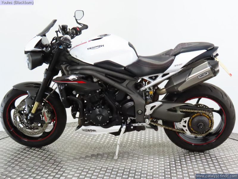 - FANTASTIC condition 2018 Triumph Speed Triple 1050 RS with 13514 miles on the clock. Fitted with Triumph heated grips, Triumph tank pad, Triumph colour coded flyscreen, Triumph sports mirrors, Evotech radiator guard & front and rear axle protection, custom seat, tail tidy and Roadlock front disc lock. Also included but not on the bike are the original pillion pegs. V5, service book (fully stamped), datatag and paperwork to support all the servicing.