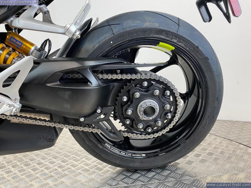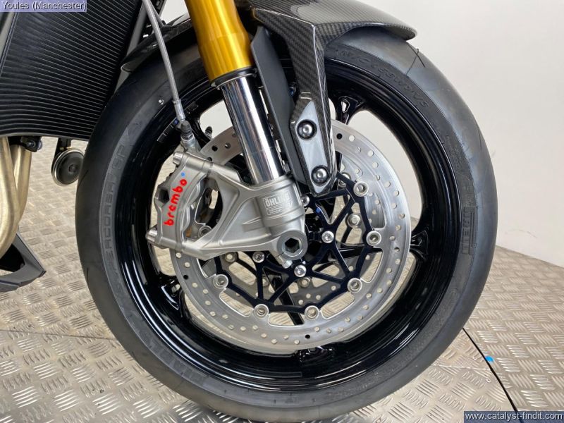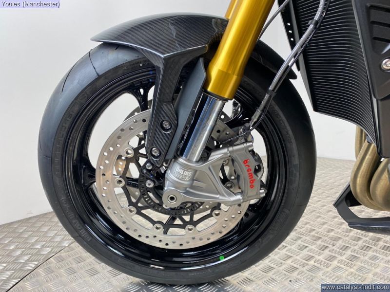 - 183PS Triple engine, Akrapovic Silencer, Carbon Fibre Front Mudguard, Lower clip-ons and rearsets, ÖHLINS Mechatronic Steering Damper, Front Wheel Lift Control, ÖHLINS SMARTEC 3.0 SUSPENSION and much more!!