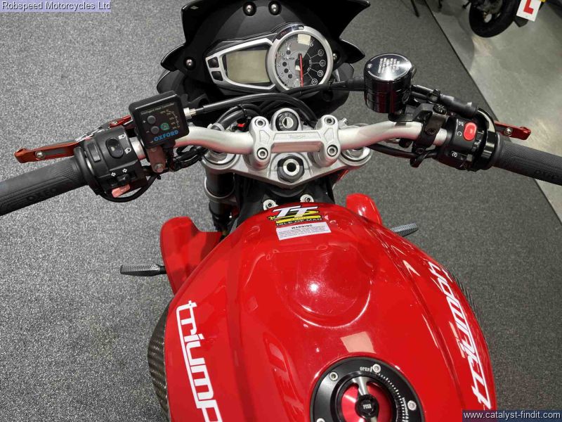 - Triumph Street Triple 675 R Registered 2012 '12' plate 23650 miles SC Projects exhaust (and standard) Carbon hugger Tail tidy Radiator guard Belly pan Engine case covers Two keys Handbook and service book