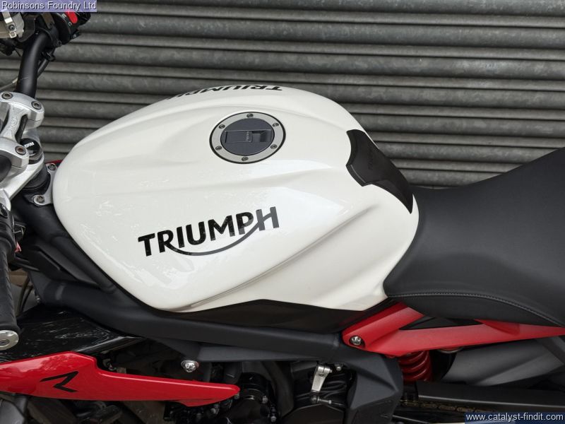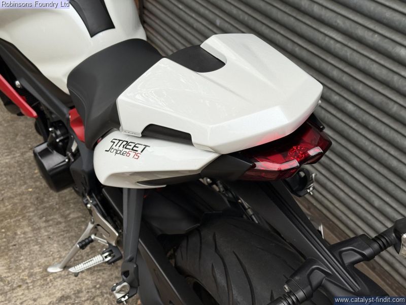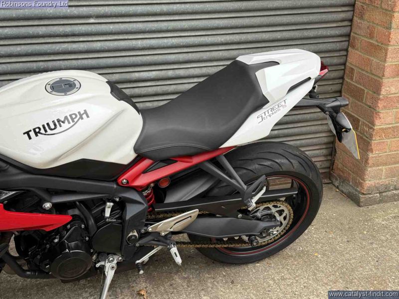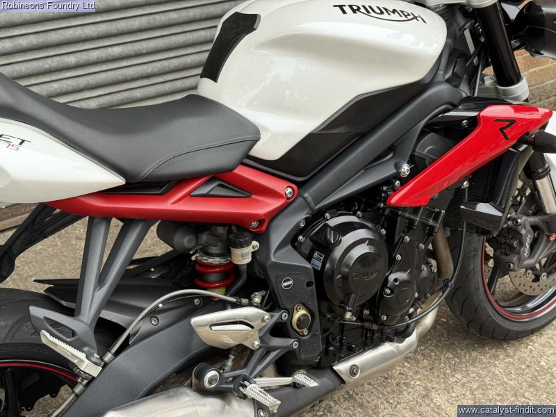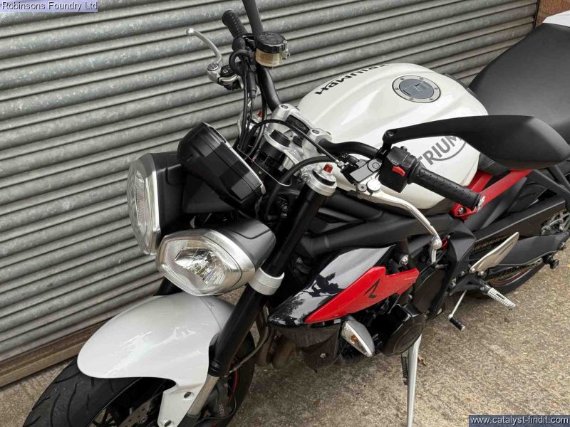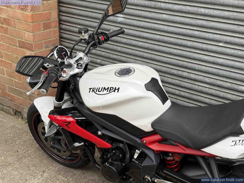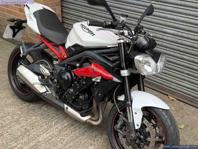 - Experience pure riding precision with this 2015 Triumph Street Triple R ABS in stunning white, priced at £4,499. Covering 19,591 miles, this bike has been well maintained with a solid service history, reflecting the care it’s received throughout its life. This example remains almost completely standard – a rare find in today’s market, preserving the Street Triple’s renowned balance and sharp handling just as Triumph intended. With its responsive 675cc triple engine, refined suspension setup, and powerful ABS brakes, it delivers an exhilarating yet confidence-inspiring ride. Immaculately looked after and ready for the road, this Street Triple R represents exceptional value for riders seeking performance, reliability, and the timeless Triumph character in one dynamic package.