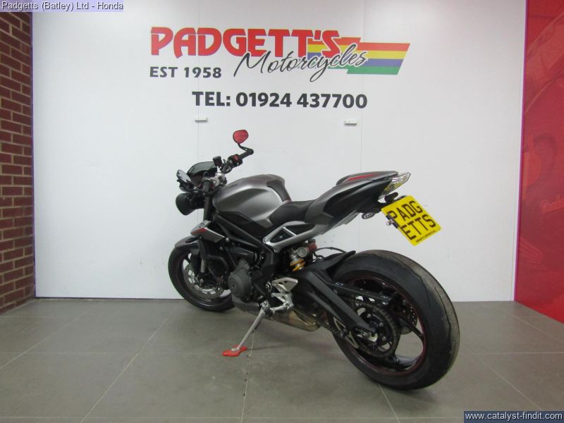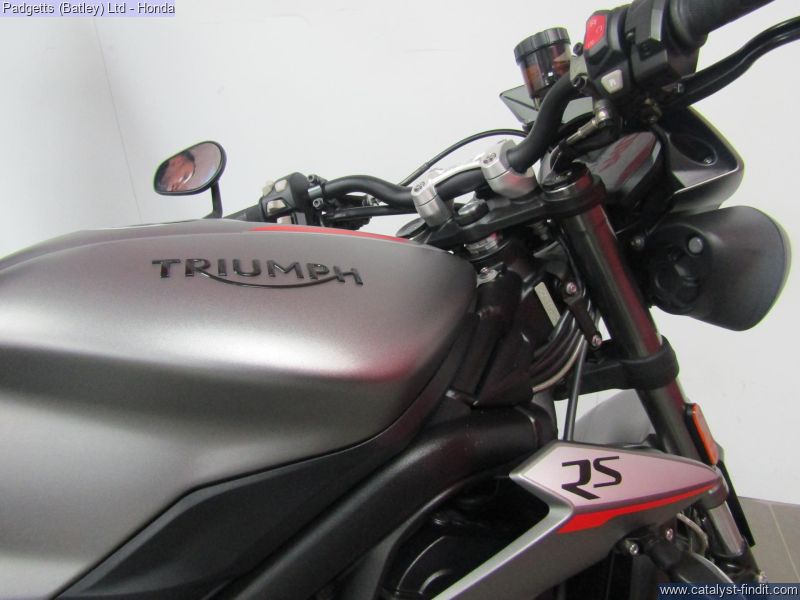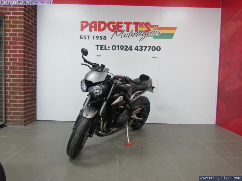 - We present here for sale this Triumph Street Triple RS 765 in Grey. The bike has only covered 5,080 miles and is in good condition. The bike has been fitted with some great extras including: - Arrow Exhaust, Evotech Tail Tidy, Evotech Radiator Guard, Triumph Quick shifter, Triumph Seat Cowl, Triumph Tank Pad and R&G Stand Bobbins. The bike comes complete with Original Owner’s Manual, 2 Keys, Service Book showing part service history (5 dealer stamps – last @ 4,089 miles on 05/09/2022) and Log book and is Datatag’ed. The bike is available for viewing and is well worth a look. Finance is available and is subject to status. Part Exchanges welcome. Nationwide delivery can be arranged from as little as £75. Usual Dealer Facilities including a large range of clothing, helmets & accessories. Call Padgett's Motorcycles today to ensure that you don't miss out; Suzuki Sales Centre 01924 609808, Honda Sales Centre 01924 437700 and Yamaha Sales Centre 01924 478491.