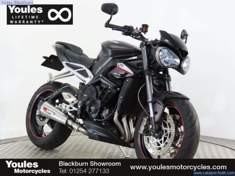 - Triumph Street Triple RS 765, 2019, Matt Black colour, 4879 miles, in great all round condition. Comes with Scorpion exhaust, Bar End Mirrors, Ohlins Rear Suspension, Showa Front Forks, Brembo Brakes, Emgine Protectors
