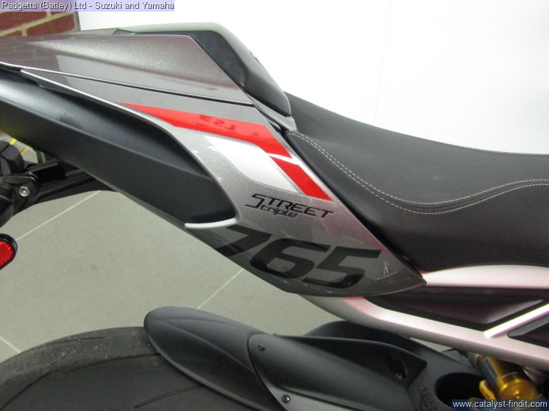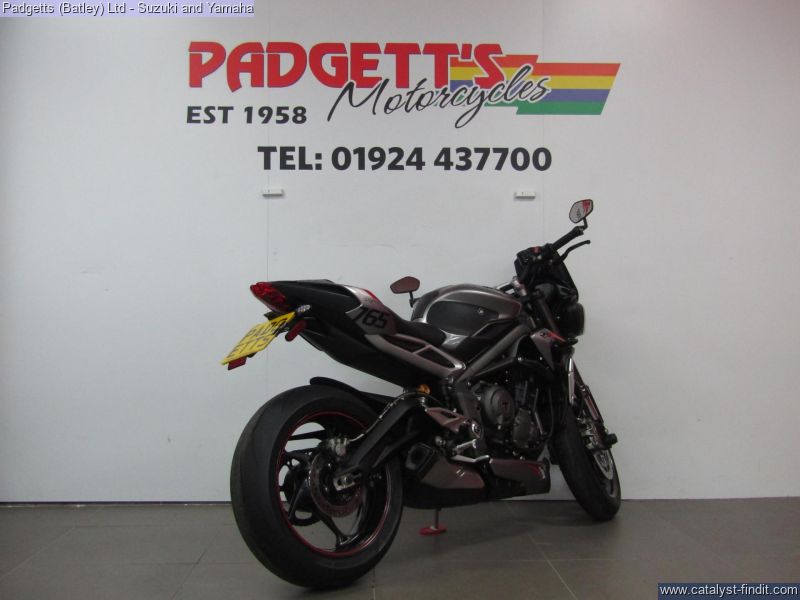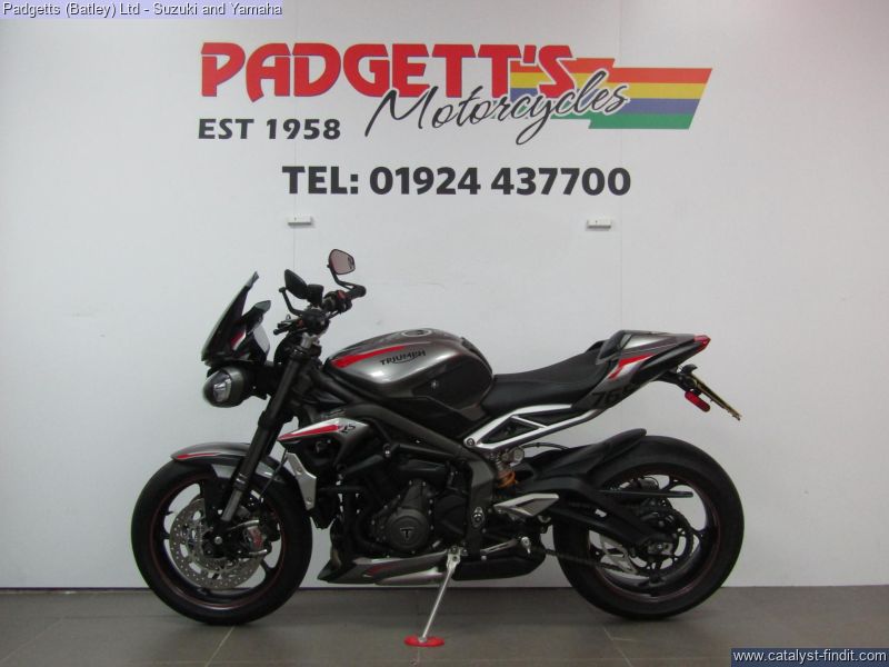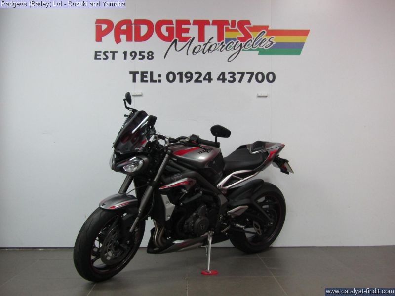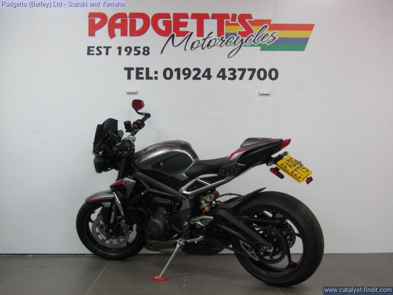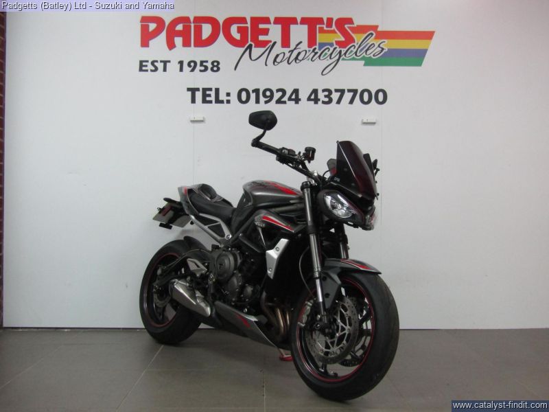 - We present here for sale this Triumph Street Triple 765 in grey. The bike has only covered 7496 miles and is in great condition. The bike has been fitted with some superb extras including: - Eazi grip tank grips, tank pad, seat cowl, paddock stand bobbins rear, axle slider front, tail tidy, Puig dark screen and genuine Triumph quickshifter. The bike comes complete with Original Owner’s Manual, 2 Keys, Service book - Showing part Service History (3 dealer stamps and one home service completed in April 2025) and Log book. The bike is available for viewing and is well worth a look. Finance is available and is subject to status. Part Exchanges welcome. Nationwide delivery can be arranged from as little as £75. Usual Dealer Facilities including a Large range of clothing, helmets & accessories. Call Padgett's Motorcycles today to ensure that you don't miss out; Suzuki Sales Centre 01924 609808, Honda Sales Centre 01924 437700 and Yamaha Sales Centre 01924 478491.