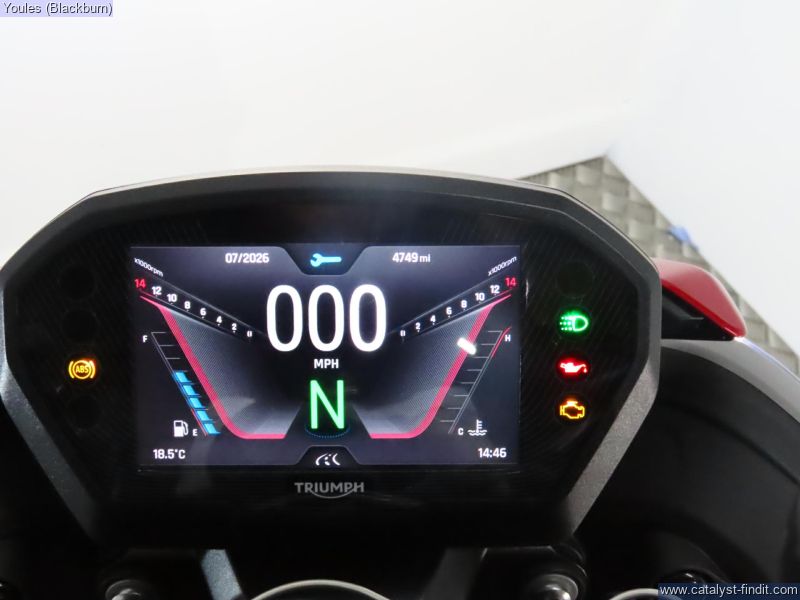- SUPERB condition 23 plate Triumph Street Triple 765 RS in Carnival red with only a mere 3186 miles on the clock! Equipped with Showa BP forks, Ohlins TTX rear shock, 5 inch TFT screen, 130PS Moto2 derived engine and revised geometry.