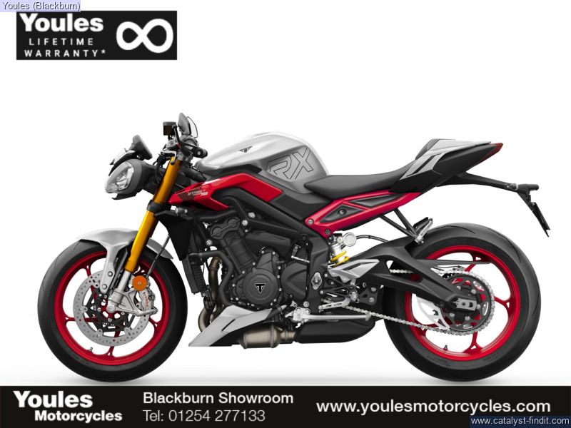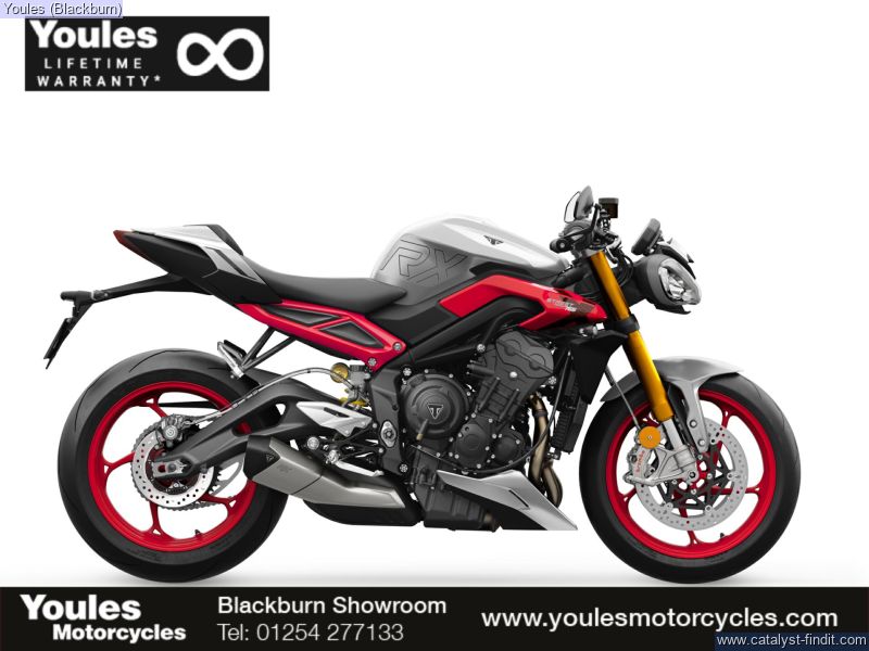 - Brand new for 2026, the ultimate track Street Triple. Equipped with fully adjustable Öhlins NIX Upside Down Forks and STX40 RSU, clip-on handlebars and race ready components for precise handling. A billet-machined top yoke with the RX logo laser-etched on top, a striking RX livery with a clean Matt Aluminium base with striking Diablo Red accents that pays homage to the original Street Triple 765 RX.