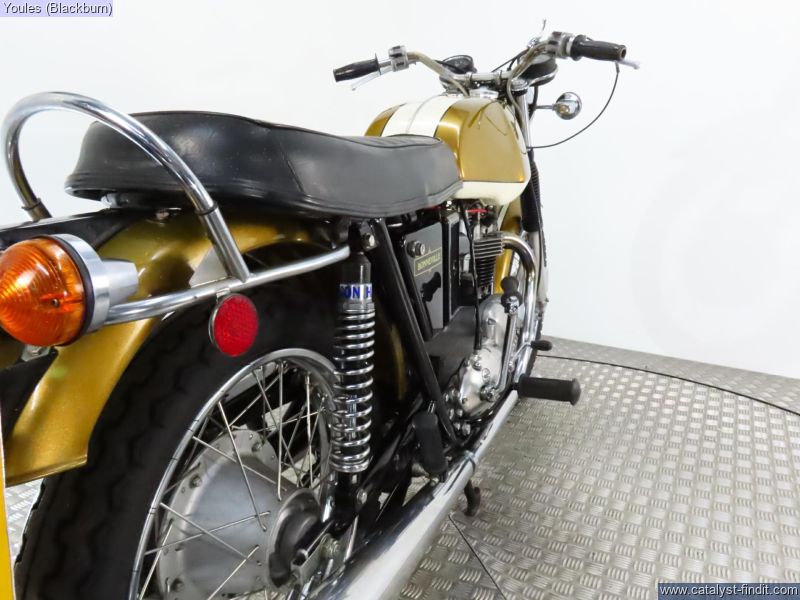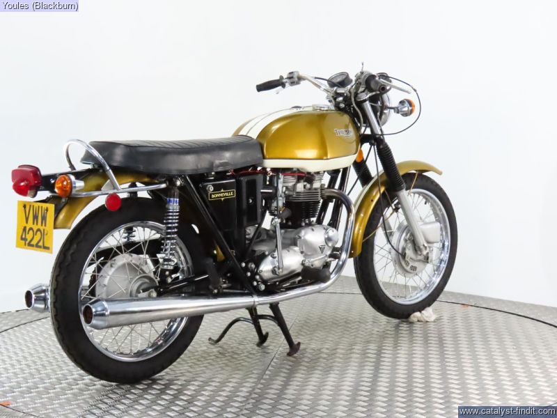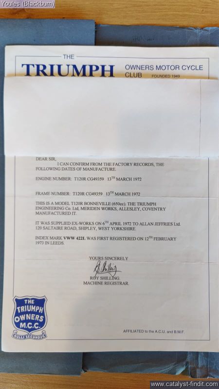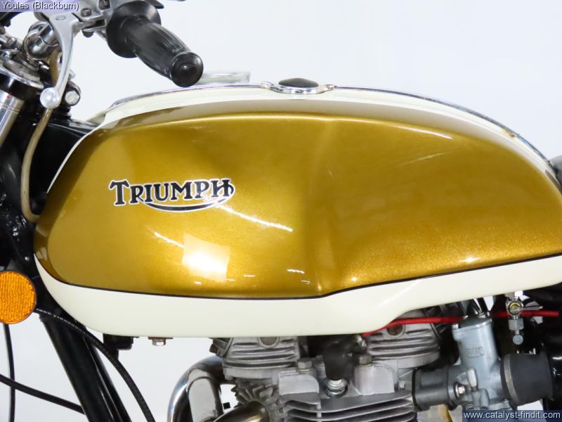 - Triumph T120R in white and gold from 1973 with 8397 miles on the clock. Comes with bound workshop manual, historic documents, Triumph Factory Records certificate from The Triumph Owners M.C.C., V5, 1 set keys. Matching engine and frame numbers.