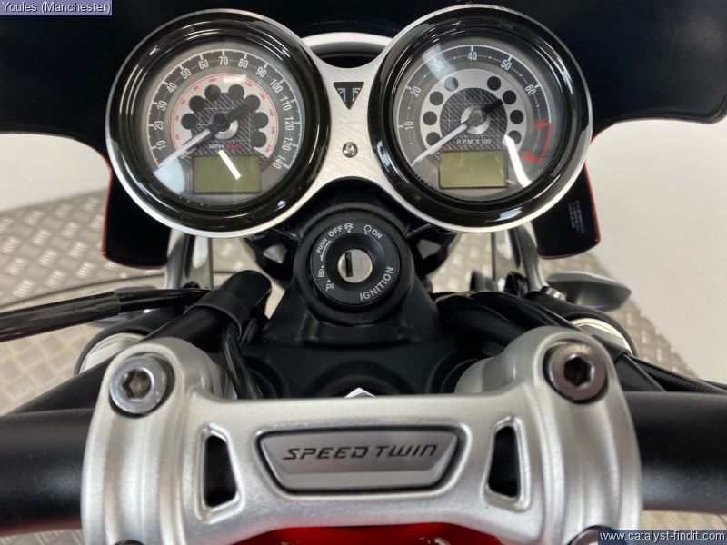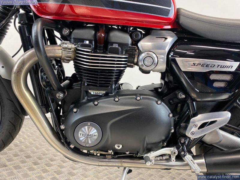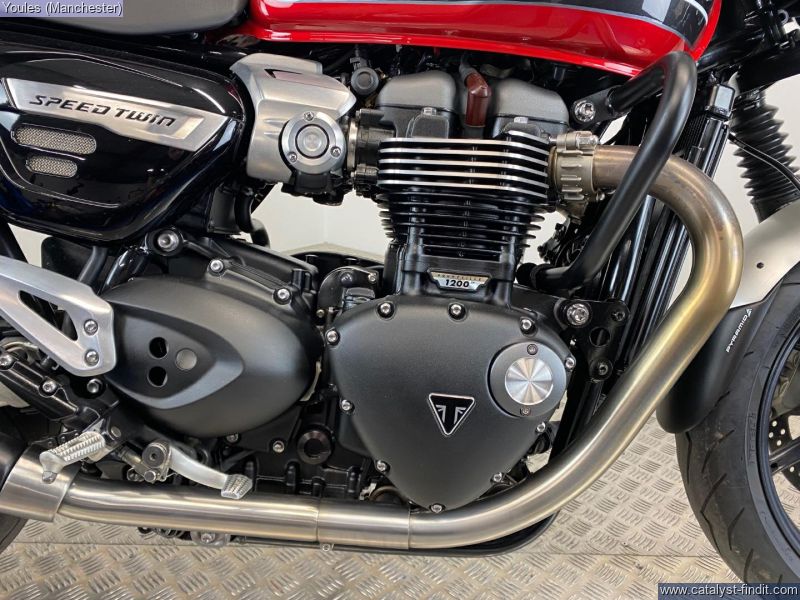 - TRIUMPH SPEED TWIN 1200 IN KOROSI RED IN EXCELLENT CONDITION. 68 REG WITH ONLY 9633 MILES & TRIUMPH SH. LOVELY BIKE FITTED WITH SOME NICE ACCESSORIES INCLUDING COLOUR CODED FLY SCREEN, GENUINE HEATED GRIPS, BAR END MIRRORS & ENGINE BARS ALONG WITH A D-CAT PIPE MAKING IT LOOK & SOUND FANTASTIC. THE BIKE IS SUPPLIED WITH ORIGINAL CAT PIPE, 2 X KEYS, SERVICE & HANDBOOK IN ITS ORIGINAL TRIUMPH WALLET.