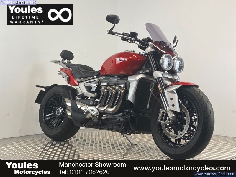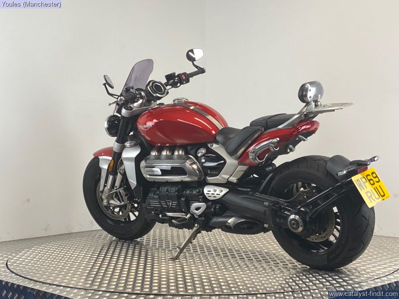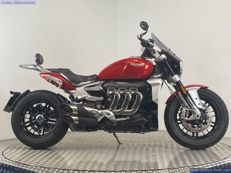 - STUNNING RED ROCKET R ON A 69 PLATE WITH JUST 10,293 MILES! THE MIGHTY ROCKET IS A STATEMENT BIKE WITH A 3 SECOND 0-60 AND ITS POWERFUL 2.5L ENGINE DELIVERING THE MOST TORQUE OF ANY PRODUCTION MOTORCYCLE! THIS EXCELLENT EXAMPLE COMES WITH EXCELLENT SERVICE HISTORY INCLUDING A RECENT 10K SERVICE CARRIED OUT BY OURSELVES. THE BIKE HAS A TOURING SCREEN, HEATED GRIPS, QUICK SHIFTER, PILLION BACKREST/REAR RACK AND PANNIER RAILS FITTED. THERE IS 1 FOB, 1 KEY AND 2 BOOKS TO COMPLIMENT IT.