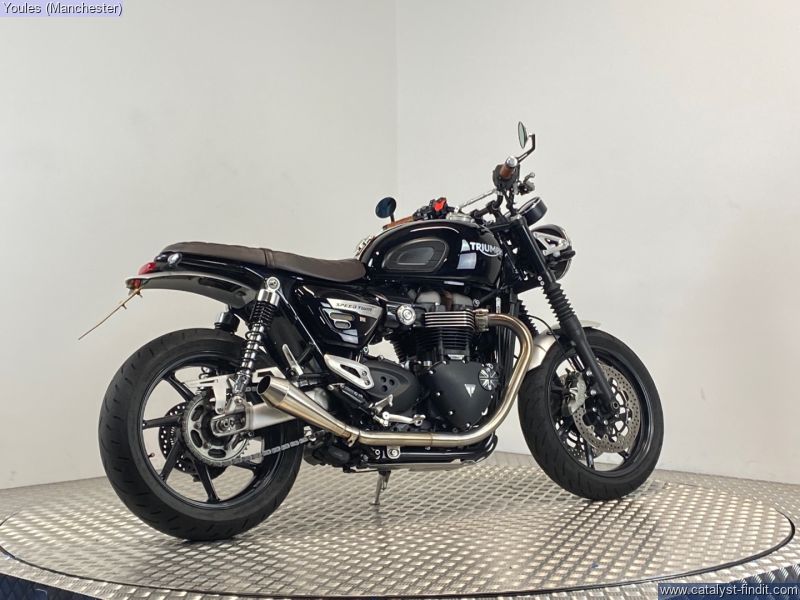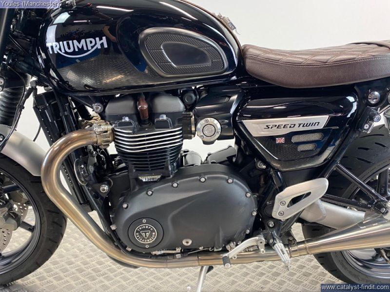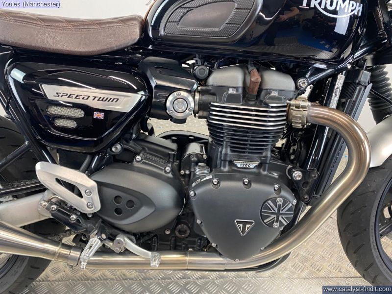 - ARRIVED IN STORE IS THIS FANTASTIC JET BLACK SPEED TWIN 1200. HAVING COVERED JUST 6310 MILES FROM 3 FORMER KEEPERS YOU COULD BE THE 4TH OWNER OF THIS LOVELY TRIUMPH! EXTRA'S FITTED INCLUDE: BROWN QUILTED COMFORT SEAT, TAIL TIDY, RENTHAL HANDLEBARS, BAR RISERS, OMEGA TANK STRAP, CHAIN GUARD, REAR PADDOCK BOBBINS, AFTERMARKET BRAKE AND CLUTCH LEVERS.