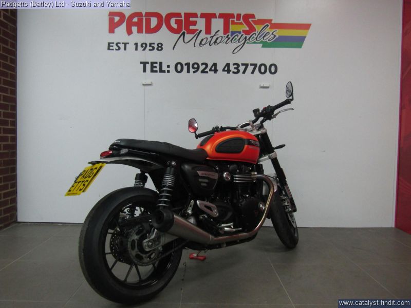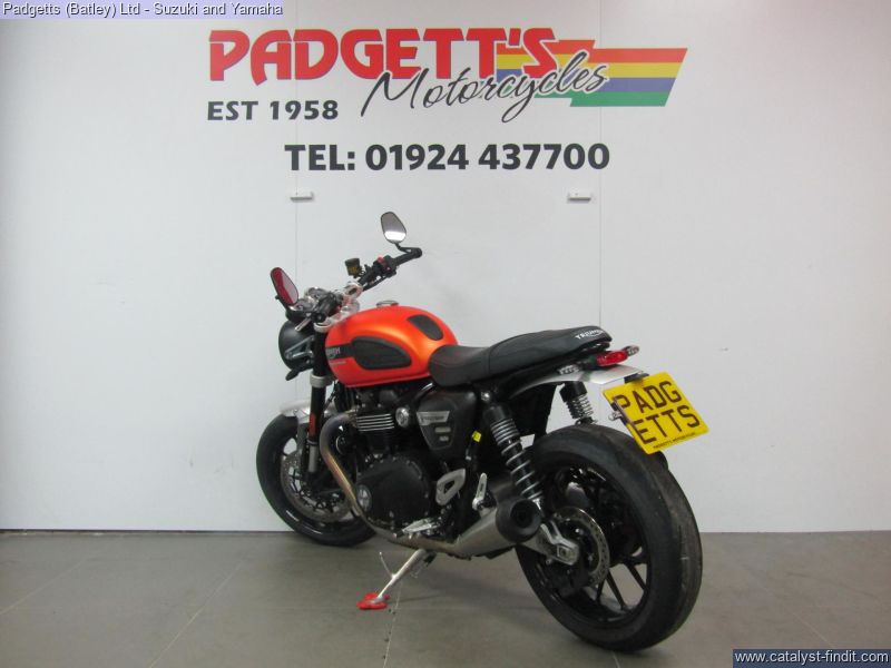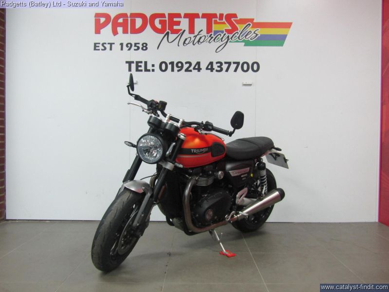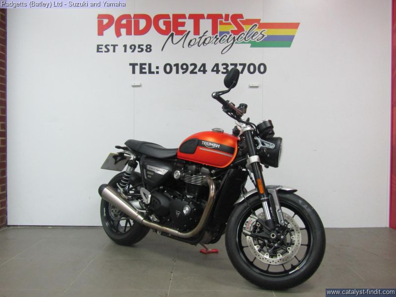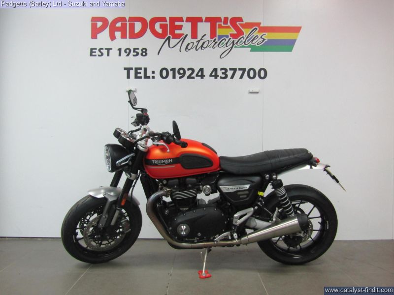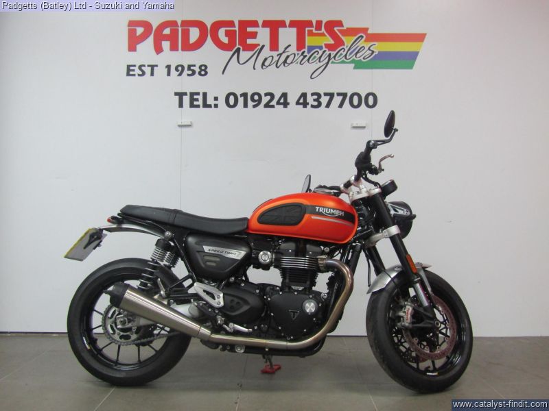 - We present here for sale this Triumph Speed Twin in Orange. The bike has only covered 4,028 miles and is in great condition. The bike comes complete with Original Owner’s Manual, 2 Keys, Service Receipts showing Full Triumph Service History and Log book and is Datatag’ed. The bike is available for viewing and is well worth a look. Finance is available and is subject to status. Part Exchanges welcome. Nationwide delivery can be arranged from as little as £75. Usual Dealer Facilities including a Large range of clothing, helmets & accessories. Call Padgett's Motorcycles today to ensure that you don't miss out; Suzuki Sales Centre 01924 609808, Honda Sales Centre 01924 437700 and Yamaha Sales Centre 01924 478491.
