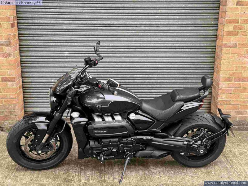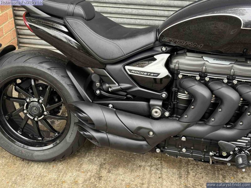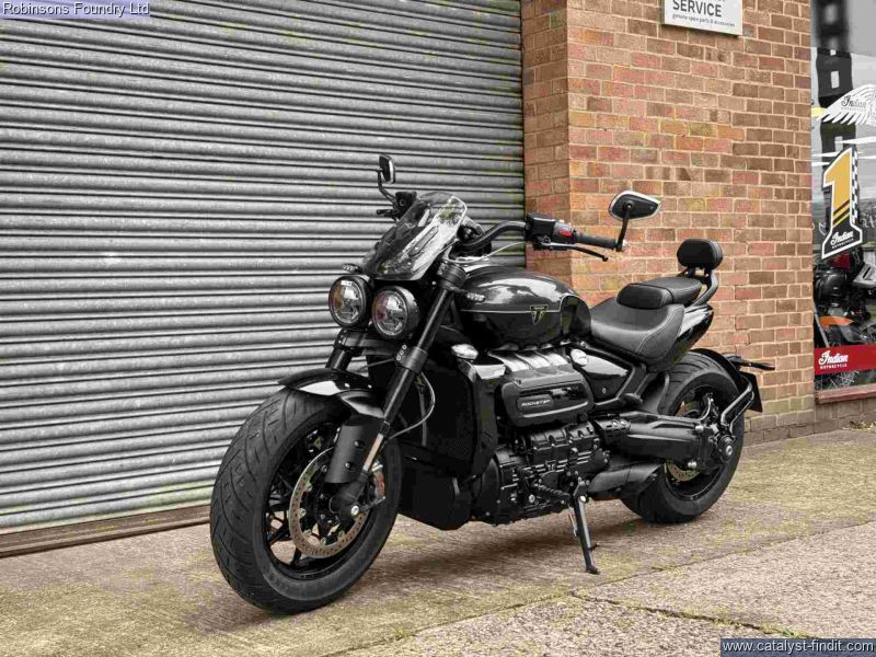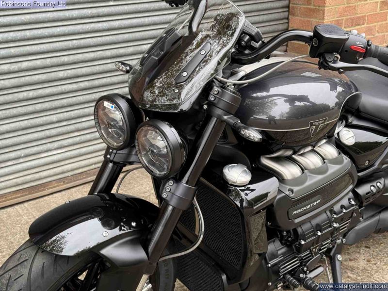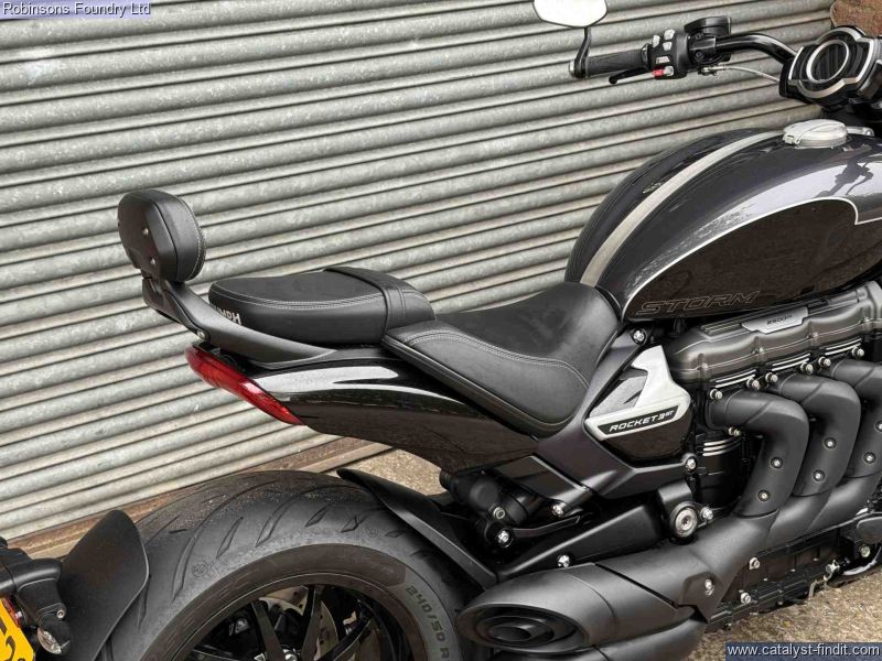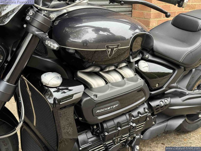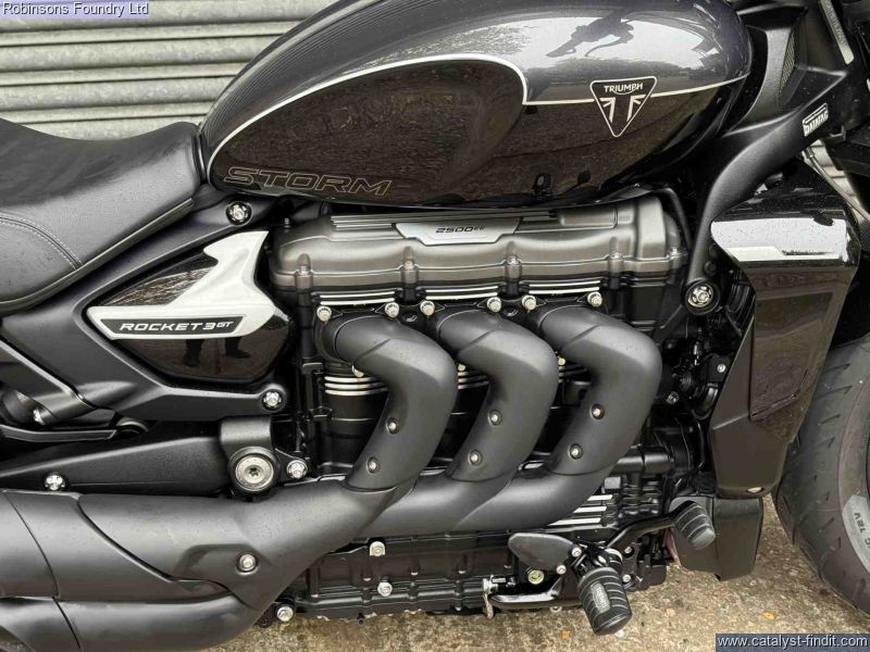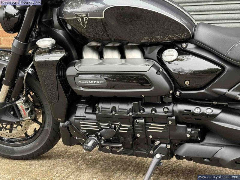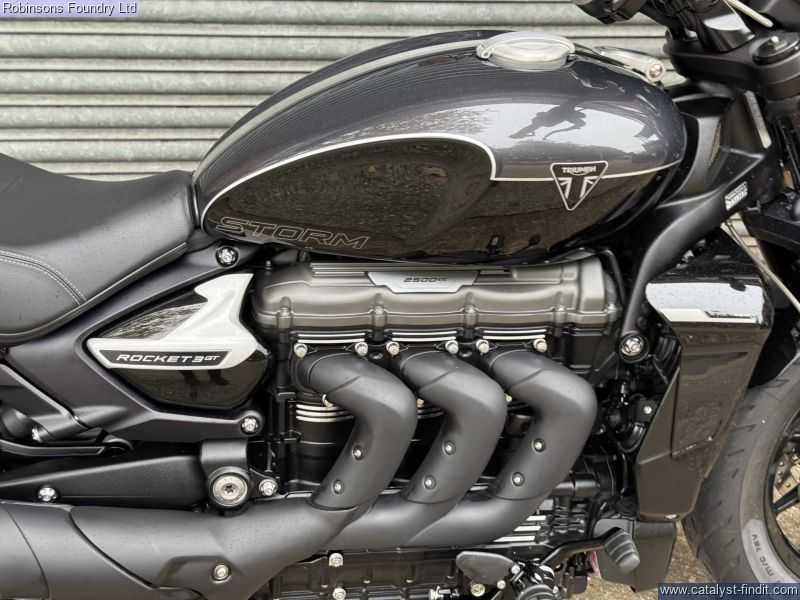 - The 2024 Triumph Rocket 3 Storm GT is the ultimate muscle roadster, delivering unmatched presence and performance. Powered by the world’s largest production motorcycle engine — a 2,458cc triple producing huge torque and effortless acceleration — the Rocket 3 combines incredible power with long-distance comfort and unmistakable style. With just 1,994 miles on the clock and presented in perfect condition, this example has been meticulously cared for and comes with full Triumph service history for complete peace of mind.Th bike is supplied with a full Triumph manufacturer warranty valid until 13/04/2026, offering reassurance and protection for years to come. Finished with GT ergonomics for relaxed touring, it features premium detailing throughout, including upgraded genuine Triumph mirrors. On top of its striking looks and world-beating performance, this Rocket 3 comes equipped with a factory Bluetooth connectivity kit, allowing smartphone pairing for navigation and calls, plus a connector lead for an Optimate charger and adaptor — making it as practical as it is powerful.Heated grips to keep your hands toastie in all conditions. A rare opportunity to own one of the most iconic and exhilarating motorcycles available today, already fitted with useful extras and in outstanding condition. Nationwide delivery, finance options and walk-around videos are available on request. Secure this stunning Rocket 3 Storm GT with a small deposit and ride away on a true legend.All vehicles are subject to a comprehensive pre delivery inspection prior to collection and come with a minimum of 6 months MOT and 3 months/3000 mile warranty - with the option to extend (subject to T&Cs). HPI Checked. Walkaround videos and delivery available upon request. Secure with £100 deposit. Finance available (T&C's Apply). Our used stock changes constantly please contact us if you cannot see what you are looking for.
