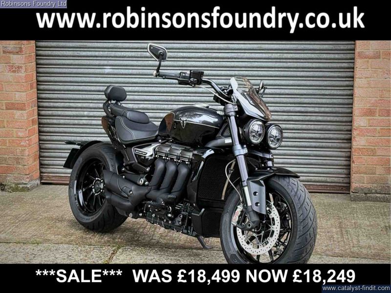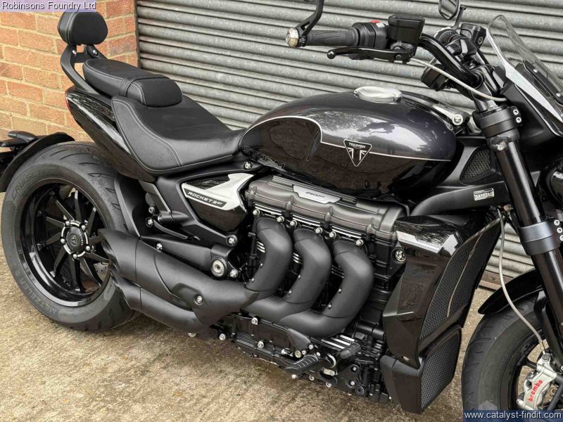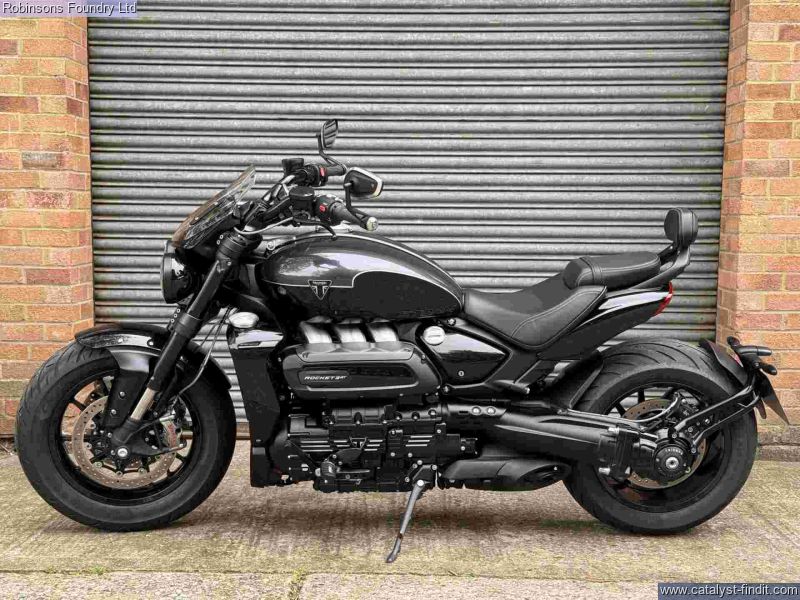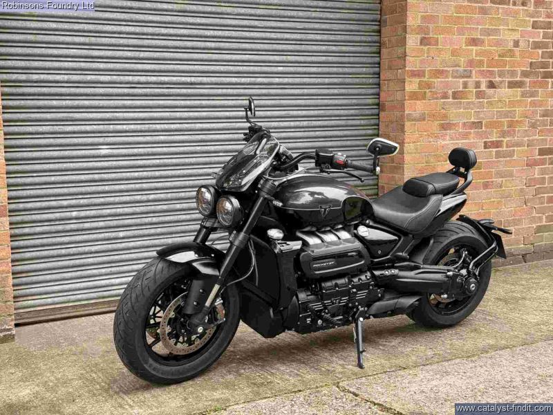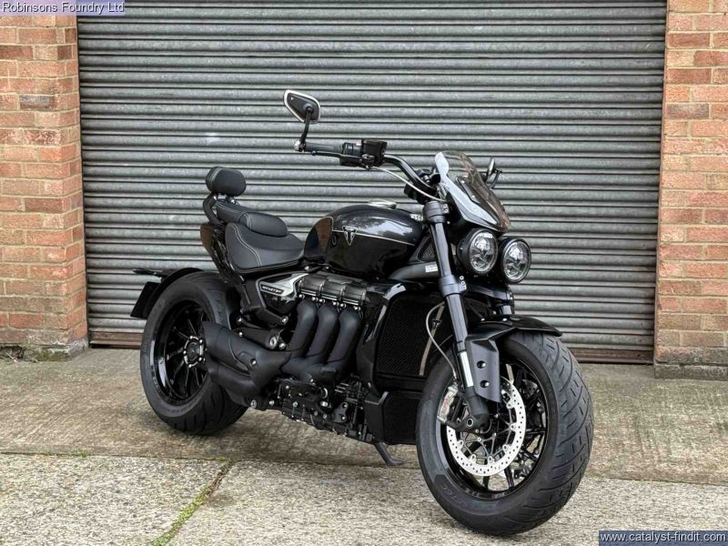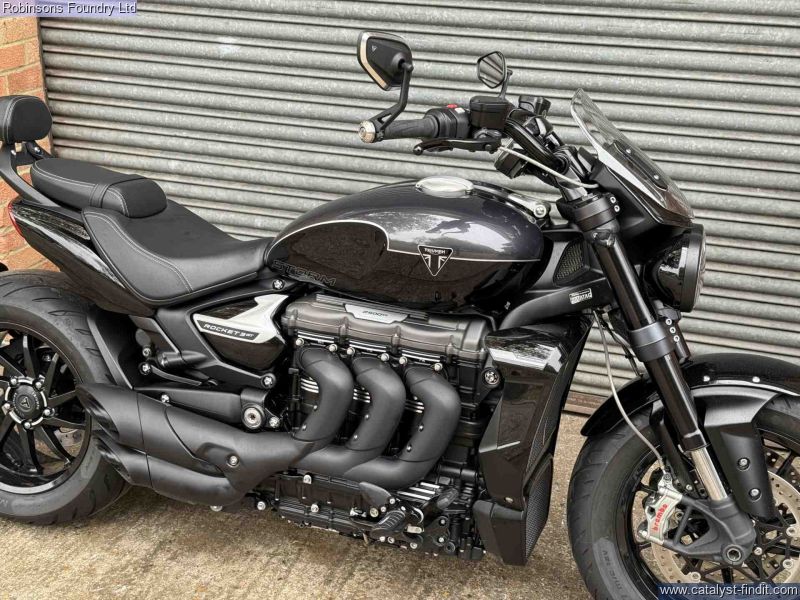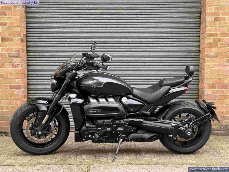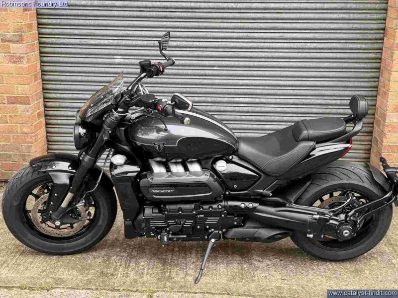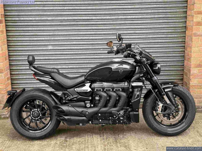 - The 2024 Triumph Rocket 3 Storm GT is the ultimate muscle roadster, delivering unmatched presence and performance. Powered by the world’s largest production motorcycle engine — a 2,458cc triple producing huge torque and effortless acceleration — the Rocket 3 combines incredible power with long-distance comfort and unmistakable style. With just 1,994 miles on the clock and presented in perfect condition, this example has been meticulously cared for and comes with full Triumph service history for complete peace of mind.Th bike is supplied with a full Triumph manufacturer warranty valid until 13/04/2026, offering reassurance and protection for years to come. Finished with GT ergonomics for relaxed touring, it features premium detailing throughout, including upgraded genuine Triumph mirrors. On top of its striking looks and world-beating performance, this Rocket 3 comes equipped with a factory Bluetooth connectivity kit, allowing smartphone pairing for navigation and calls, plus a connector lead for an Optimate charger and adaptor — making it as practical as it is powerful.Heated grips to keep your hands toastie in all conditions. A rare opportunity to own one of the most iconic and exhilarating motorcycles available today, already fitted with useful extras and in outstanding condition. Nationwide delivery, finance options and walk-around videos are available on request. Secure this stunning Rocket 3 Storm GT with a small deposit and ride away on a true legend.All vehicles are subject to a comprehensive pre delivery inspection prior to collection and come with a minimum of 6 months MOT and 3 months/3000 mile warranty - with the option to extend (subject to T&Cs). HPI Checked. Walkaround videos and delivery available upon request. Secure with £100 deposit. Finance available (T&C's Apply). Our used stock changes constantly please contact us if you cannot see what you are looking for.
