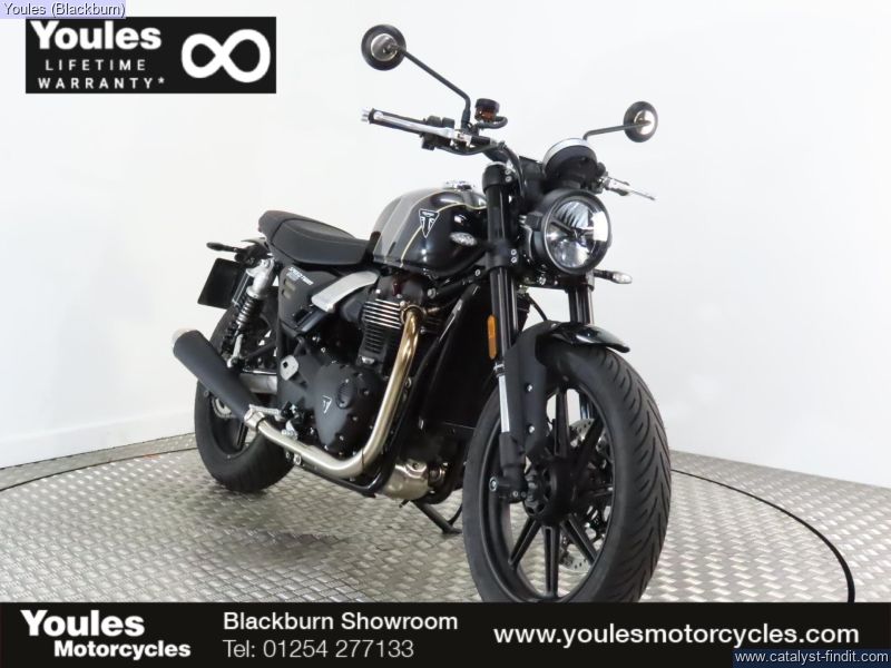 - Triumph Speed Twin 900, Black, 2025, 625 Miles, a beautiful bike with Heated grips, front and rear bobbins and tank pad fitted. Lovely example of this timeless classic. Perfect for the getaways at the weekend or daily commute to the work place.