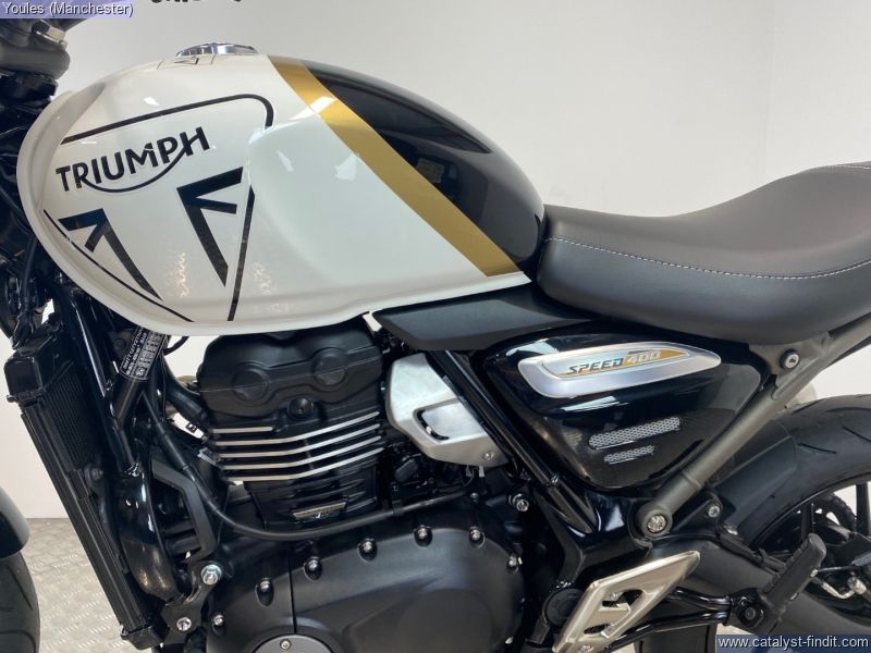 - THE SPEED 400 BRINGS THE TRIUMPH MODERN CLASSIC EXPERIENCE TO MORE RIDERS THAN EVER BEFORE. STYLED TO ECHO TRIUMPHS OF THE PAST AND APPLYING THE VERY LATEST IN ENGINEERING TECHNOLOGY, THE SINGLE-CYLINDER TR- SERIES ENGINE HAS BEEN DESIGNED TO PRODUCE A FULLY EXPLOITABLE, CHARACTERFUL AND RESPONSIVE POWER DELIVERY WITH CLASS-BEATING PERFORMANCE.