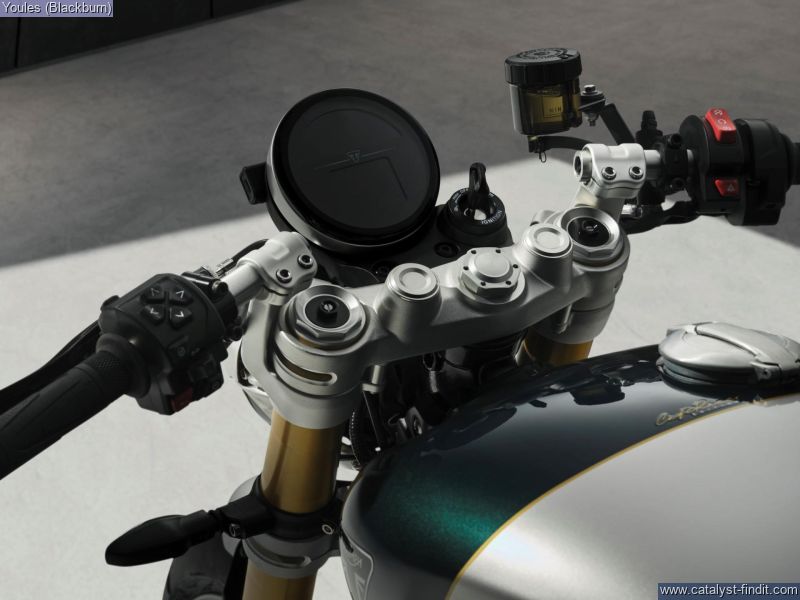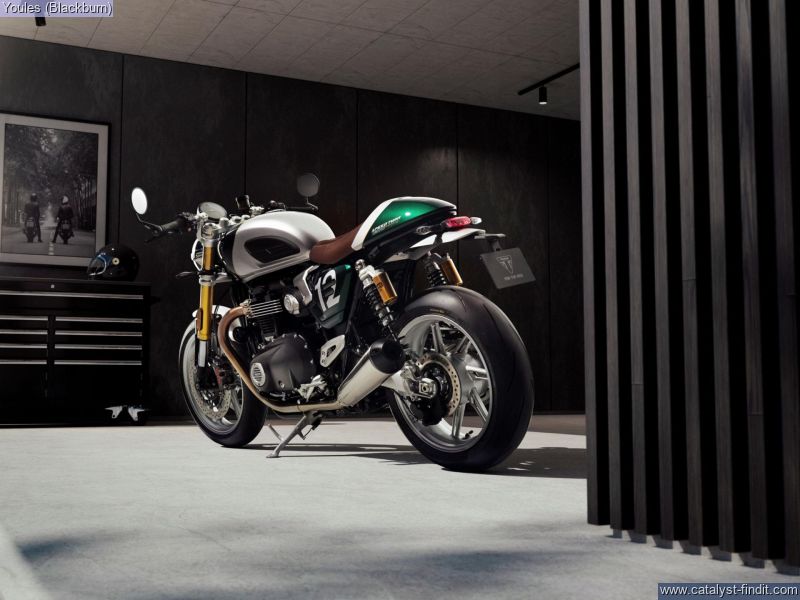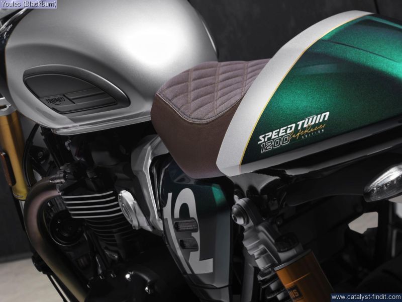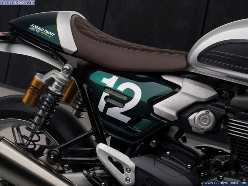 - Striking Competition Green and Aluminium Silver colour scheme. Clip-on handlebars and higher rearset footpegs. Fully-adjustable suspension, Premium Marzocchi 43 mm upside-down forks and twin Öhlins piggy-back RSUs. 1200 cc 'High Power' Bonneville Twin, Thrilling sports performance comes with an evocative soundtrack. 3 Riding modes and Triumph Shift Assist. Impeccable finish with a brown leather seat, machined mirrors and colour-matched components.