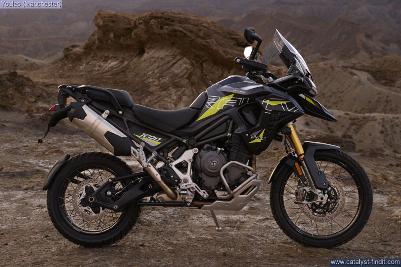 - Redefining adventure riding ADVENTURE VALUE BUILT IN The highest specification 20L Tiger 1200 for ultimate off- road adventure. DISTINCTIVE DESERT CHARACTER Bold schemes with vibrant contrast accents give a commanding, adventure-focused presence. ENHANCED TECHNOLOGY A rear-mounted radar provides Blind Spot Assist & Lane Change Assist and semi-active Showa Suspension enhance safety on every ride. TRUE ADVENTURE CAPABILITY Purpose-built for off-road exploration, a 21” tubeless spoked front wheel and protection for vital components. A true Tiger designed for the most demanding off-road adventures.