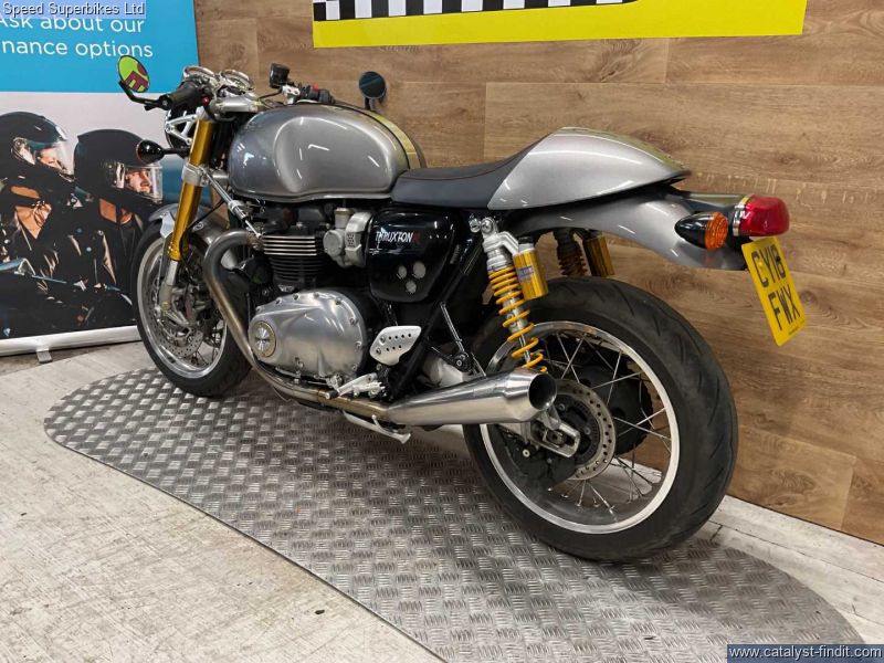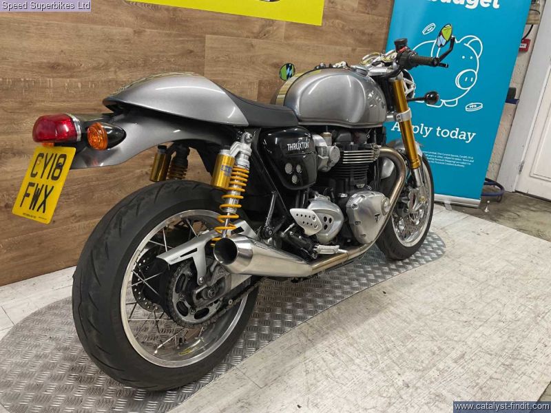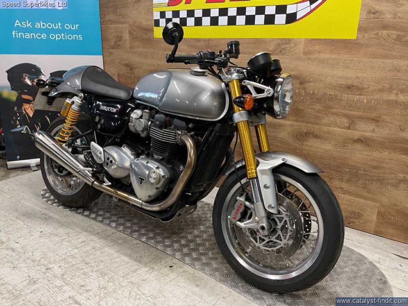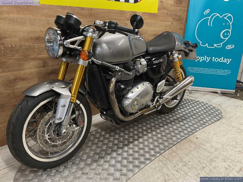 - TRIUMPH THRUXTON 1200 R, 2018, 8399 miles, 3 owners, service book with 2 stamps and 2 invoices (will have a oil and filter service), handbook and spare key. This Thruxton comes fitted with Vance and Hines exhaust, adjustable lever and LSL steering dampener. Retail bikes: Competitive finance & great part exchange allowances. Call our team for an easy, no obligation quote. All our retail bikes come with a full PDI, valet & 3 months total cover warranty (additional £75). Credit & debits cards accepted. Delivery in mainland UK from only £125 + VAT. Compulsory admin fee of £100 for 3rd party finance.