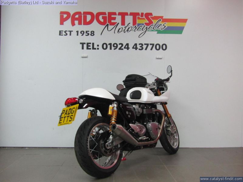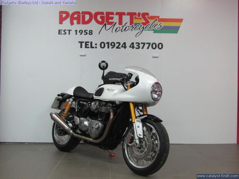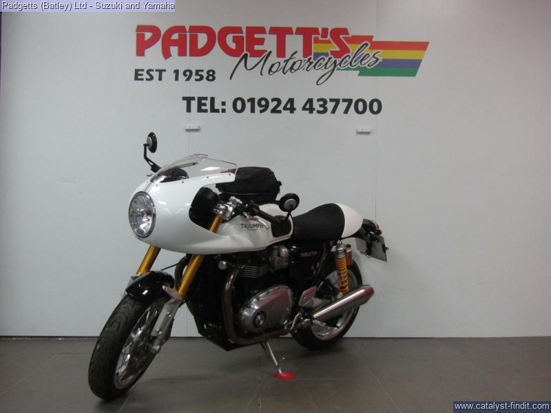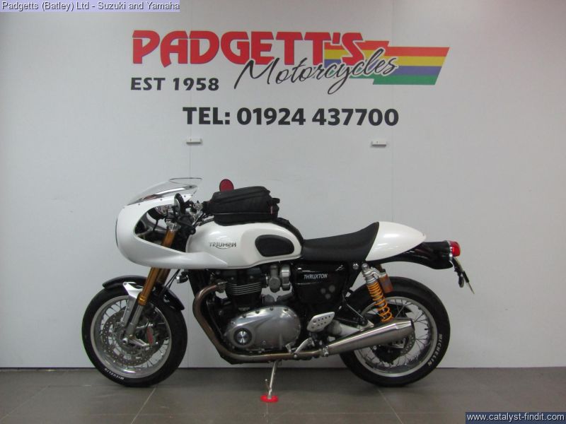 - We present here for sale this Triumph Thruxton R 1200 in White. The bike has only covered 5,624 miles and is in great condition. The bike has been fitted with some superb extras including: Front Cowl, Aftermarket Levers, Adjustable Footpegs and Tank Bag. The bike comes complete with Original Owner’s Manual, 2 Keys, Service Book Showing Part Service History (6 Dealer Stamps – last @ 4,615 miles on 18/04/2023) and Log book and is Datatag’ed. The bike is available for viewing and is well worth a look. Finance is available and is subject to status. Part Exchanges welcome. Nationwide delivery can be arranged from as little as £75. Usual Dealer Facilities including a Large range of clothing, helmets & accessories. Call Padgett's Motorcycles today to ensure that you don't miss out; Suzuki Sales Centre 01924 609808, Honda Sales Centre 01924 437700 and Yamaha Sales Centre 01924 478491.
