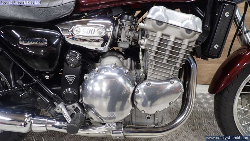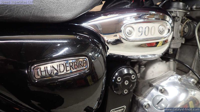 - SALE PRICE, WAS £3695 NOW £3299,1996 Triumph Thunderbird 900, only 18426 miles on the clock and eight owners from new, hand book and spare key, the bike is in good condition and comes fitted with a Triumph alloy grab rail. The Triumph Thunderbird 900 was one of Hinckley Triumph’s first big hits, the retro look T bird is still very relevant today. If anything, is even more popular today. That’s due not just to the current fashion for retros and the T bird’s ‘bigger, three cylinder Bonnie’ appeal, but also to its still relevant 70bhp performance, its durability and reliability. There’s also classy build quality and detailing plus its timeless style. These bikes will have a safety check with limited warranty. We may not be able to offer finance on these bikes due to age. Delivery in mainland UK available. Part exchange welcome.