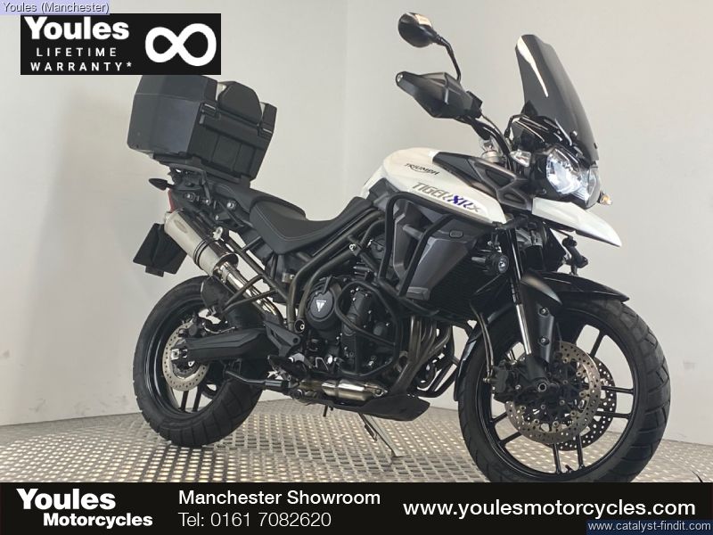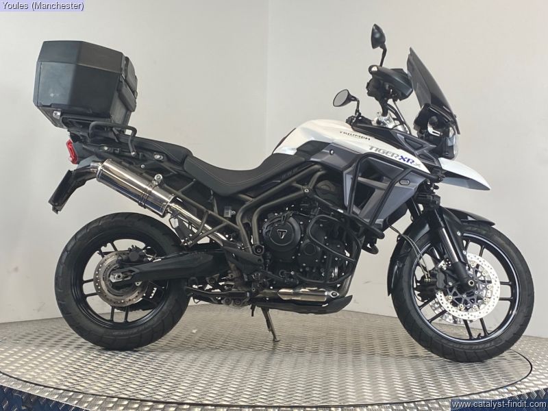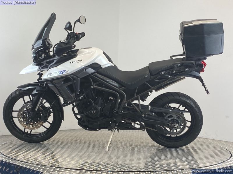 - JUST ARRIVED IN STORE IS THIS FABULOUS CONDITION TIGER 800 XRX IN WHITE - JUST 12035 MILES, 3 FORMER KEEPERS, LOADED WITH EXTRAS FITTED: DELKEVIC EXHAUST, UPPER AND LOWER ENGINE BARS, FOG LIGHTS, HANDGUARDS, CENTRE STAND, TOPBOX WITH PILLION BACKREST, ADJUSTABLE LEVERS, AFTERMARKET SCREEN, TANK PAD AND A PRIVATE REGISTRATION PLATE: P8 XRX!!