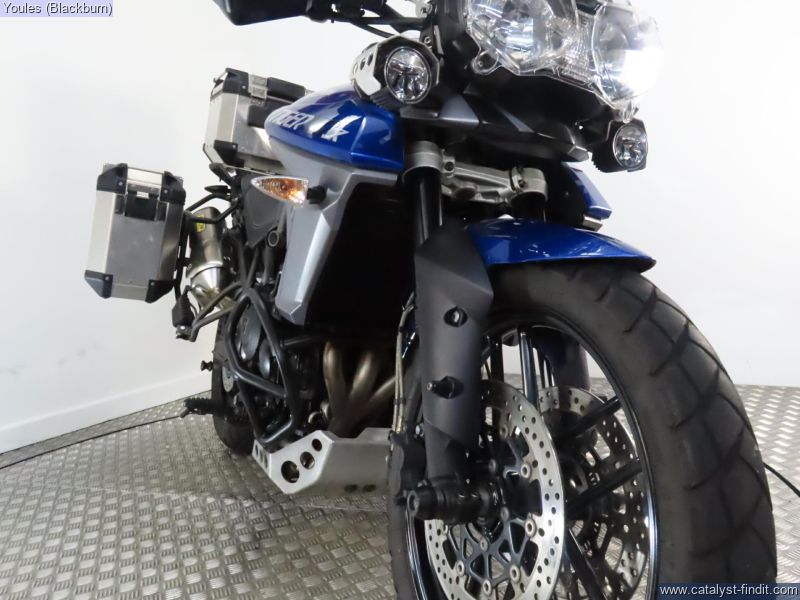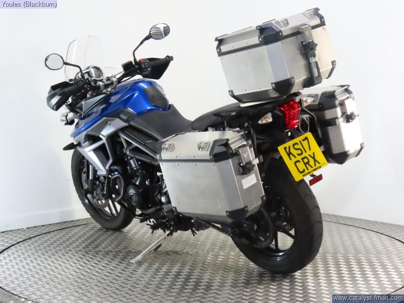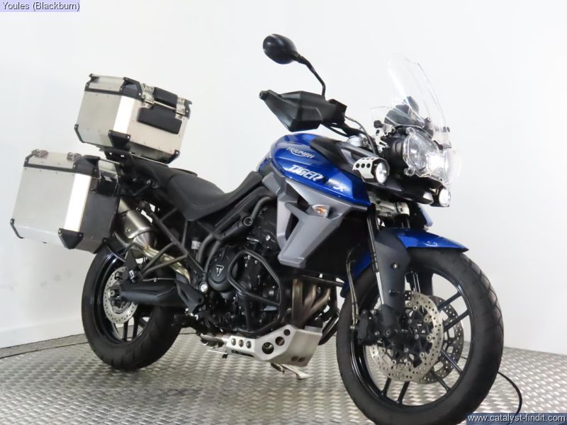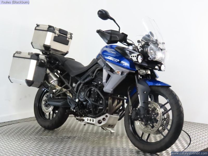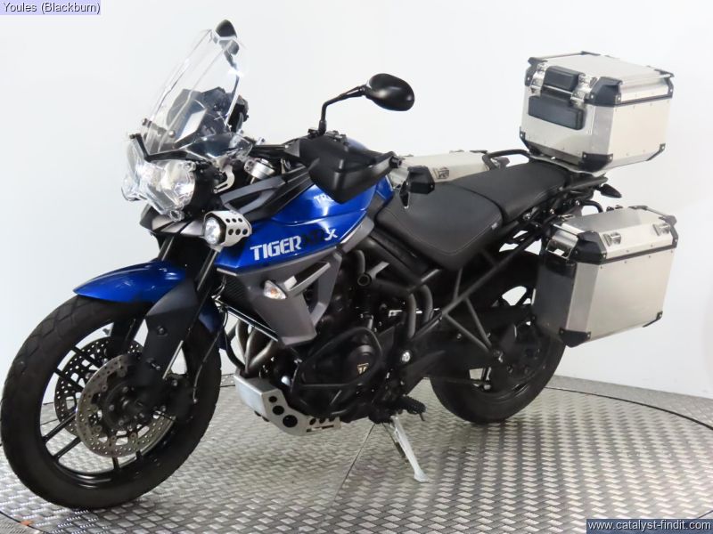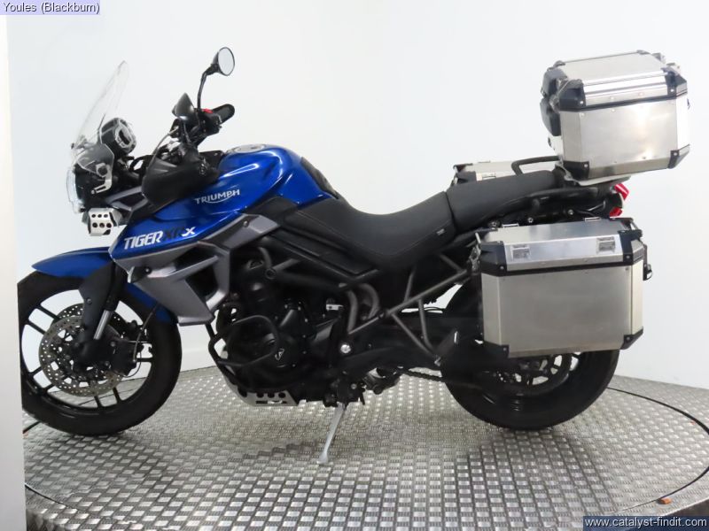 - Cracking Tiger 800 XRX LRH in blue with 17753 miles on the clock. Fitted with a host of accessories- full Triumph Expedition luggage, tank pad, fork protectors, lower engine bars, paddock bobbins, Triumph billet levers, fog lights, heated grips, Arrow exhaust, radiator guard and headlight protector. Owners manual, full stamped service history and 2 keys.