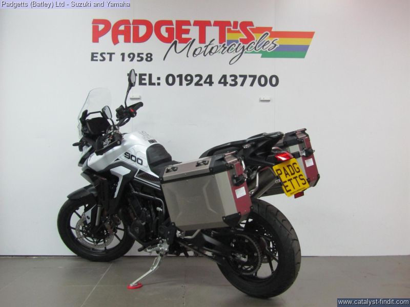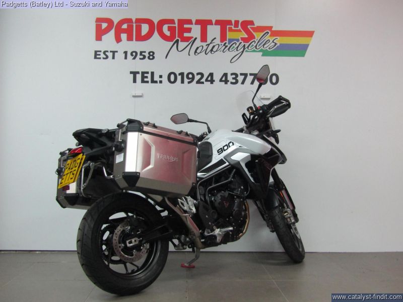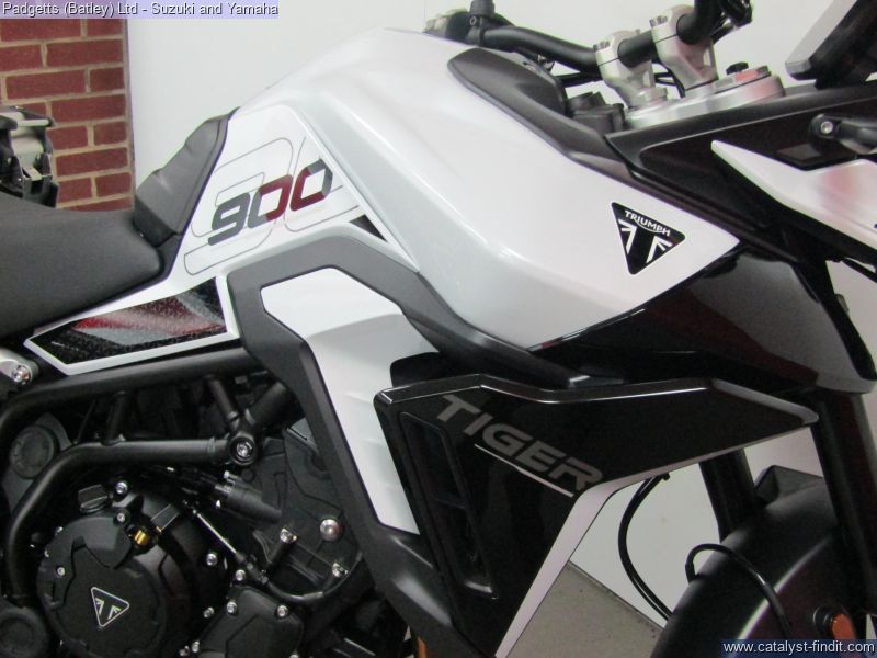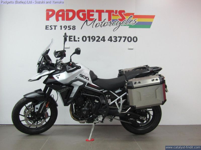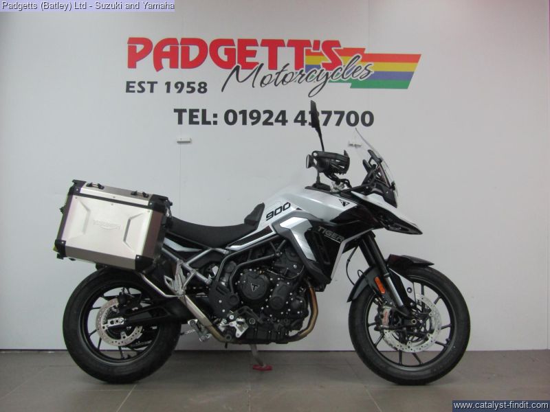 - We present here for sale this Triumph Tiger 900 GT in White & Black. The bike has only covered 12 miles and is in great condition. The bike has been fitted with some superb extras including: Heated Grips, Panniers and Handguards. The bike comes complete with Original Owner’s Manual, 2 Keys, Service Book and Log book and is Datatag’ed. The bike is available for viewing and is well worth a look. Finance is available and is subject to status. Part Exchanges welcome. Nationwide delivery can be arranged from as little as £75. Usual Dealer Facilities including a Large range of clothing, helmets & accessories. Call Padgett's Motorcycles today to ensure that you don't miss out; Suzuki Sales Centre 01924 609808, Honda Sales Centre 01924 437700 and Yamaha Sales Centre 01924 478491.